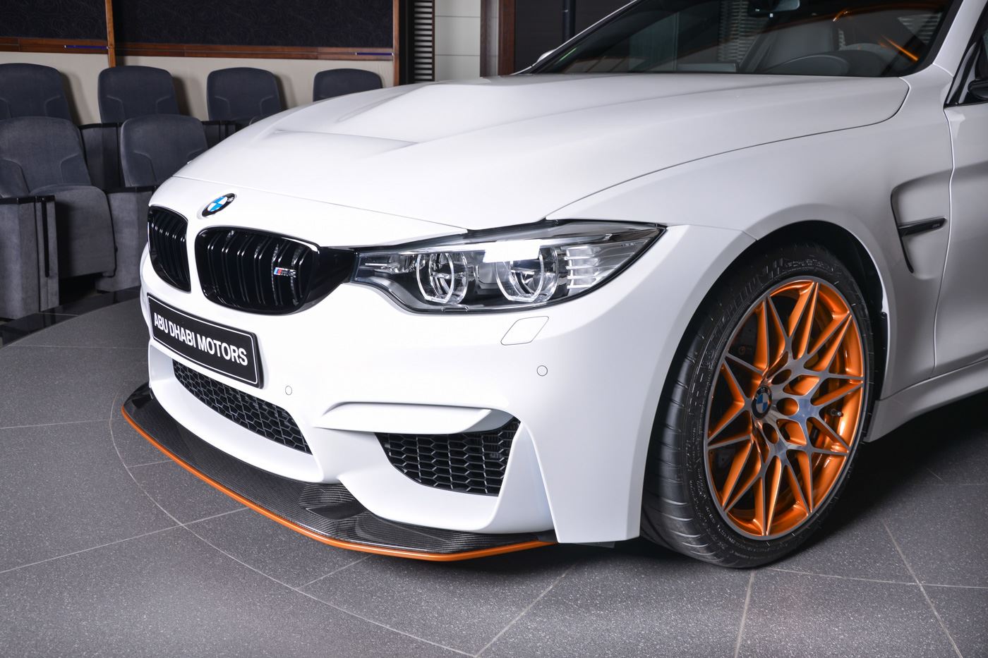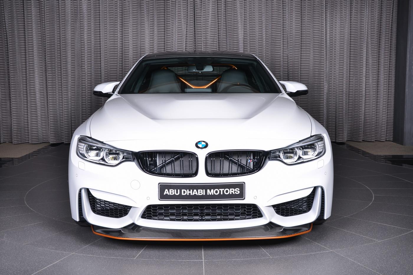 This particular car was photographed at BMW’s Abu Dhabi dealership, featuring a predominantly white exterior with orange accents and an Alcantara-rich cabin.