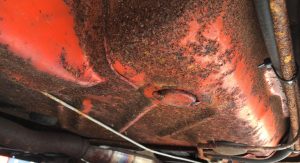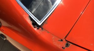 There are three build sheets for the car, all showing that it was ordered with the taxi package. The cab company though didn’t really take good care for it and it was used as a storage shelf for years, while there’s a rust hole at the rear window on the driver’s side, with surface rust also appearing in other places.