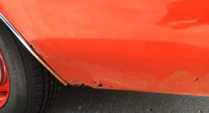 The seller says that the door decals aren’t original, while the bodywork has been touched up with orange spray to prevent rust from worsening. Also the gas tank was replaced with a new one because the original had too much rust.