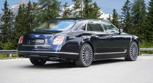 For starters, Mansory has tweaked the giant 6.75-liter V8 to produce 585 metric horsepower, which trumps the “base” model’s 512 and eclipses even the Mulsanne Speed‘s 537. With 811 lb-ft of torque, it also matches the Speed’s twist and leaves the standard version’s 752 in the dust. The result, according to the tuner, is a 0-62 time of 5.0 seconds and a top speed approaching 190 miles per hour. Not bad for a 2.6 metric tons of leather and wood, even if it still somehow lags behind the Mulsanne Speed’s official figures.