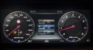 Benz’s performance division, as you may have noticed, offers two versions of the big luxury sedan: the S63 and S65. The former packs a 4.0-liter V8 rated at 612 horsepower and 664 lb-ft of torque, the latter a 6.0-liter V12 with 630 hp and 738 lb-ft – both twin-turbocharged. Yet it’s the less potent of the two that wins off the line. And not by a small margin, either.