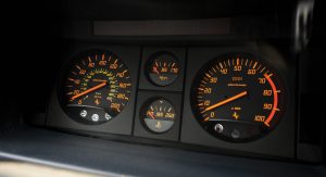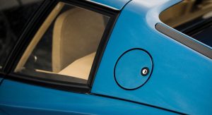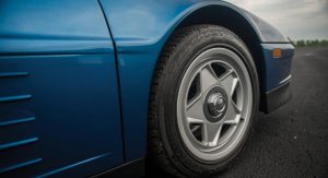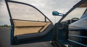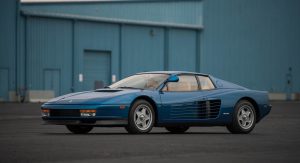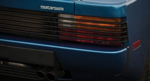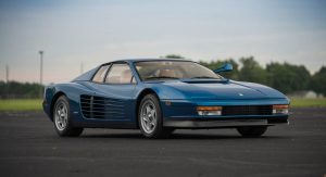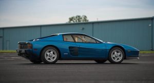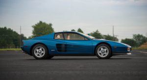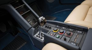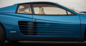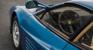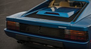 This ’86 Testarossa came in a rather elegant and understated combination or Blu Chiaro Metallizato with a two-tone cream and blue leather interior. It’s the only one with the single “monospecchio” side mirror believed to have been delivered in this unique combination in the United States.