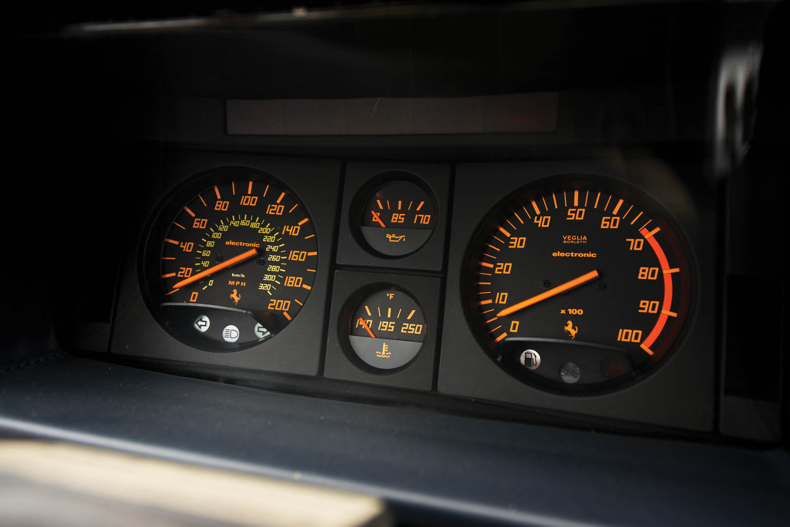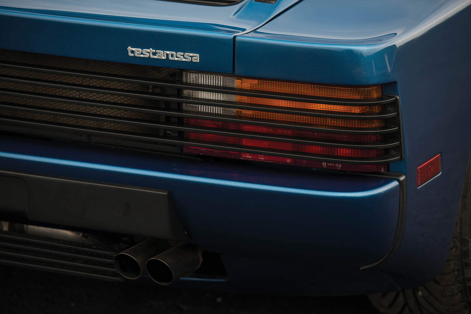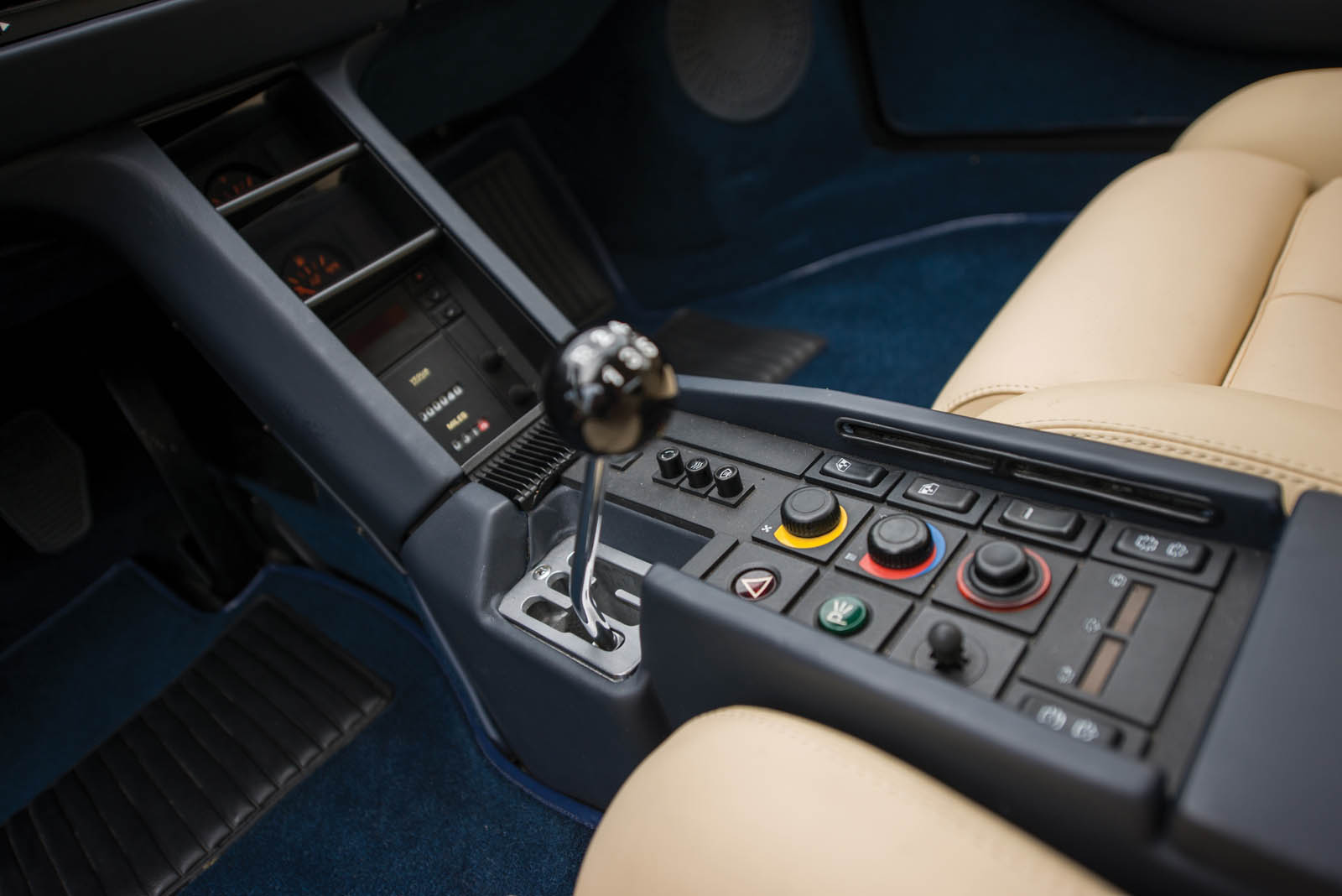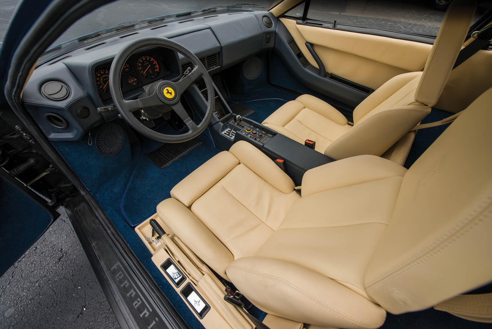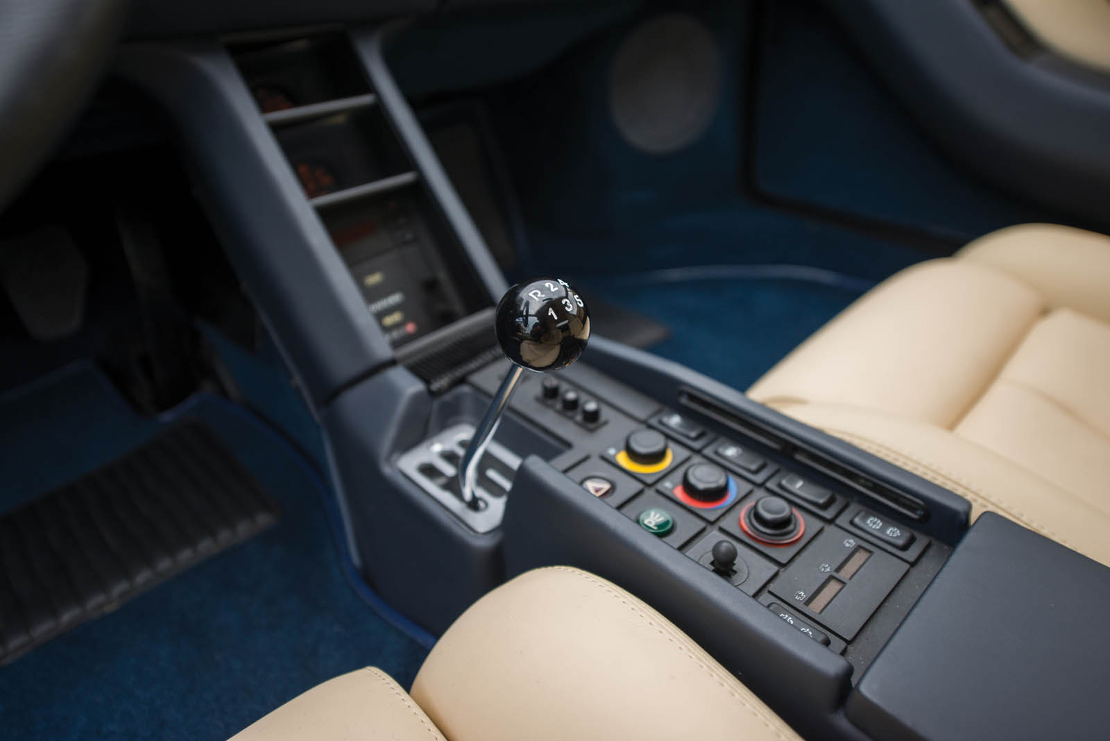 This ’86 Testarossa came in a rather elegant and understated combination or Blu Chiaro Metallizato with a two-tone cream and blue leather interior. It’s the only one with the single “monospecchio” side mirror believed to have been delivered in this unique combination in the United States.