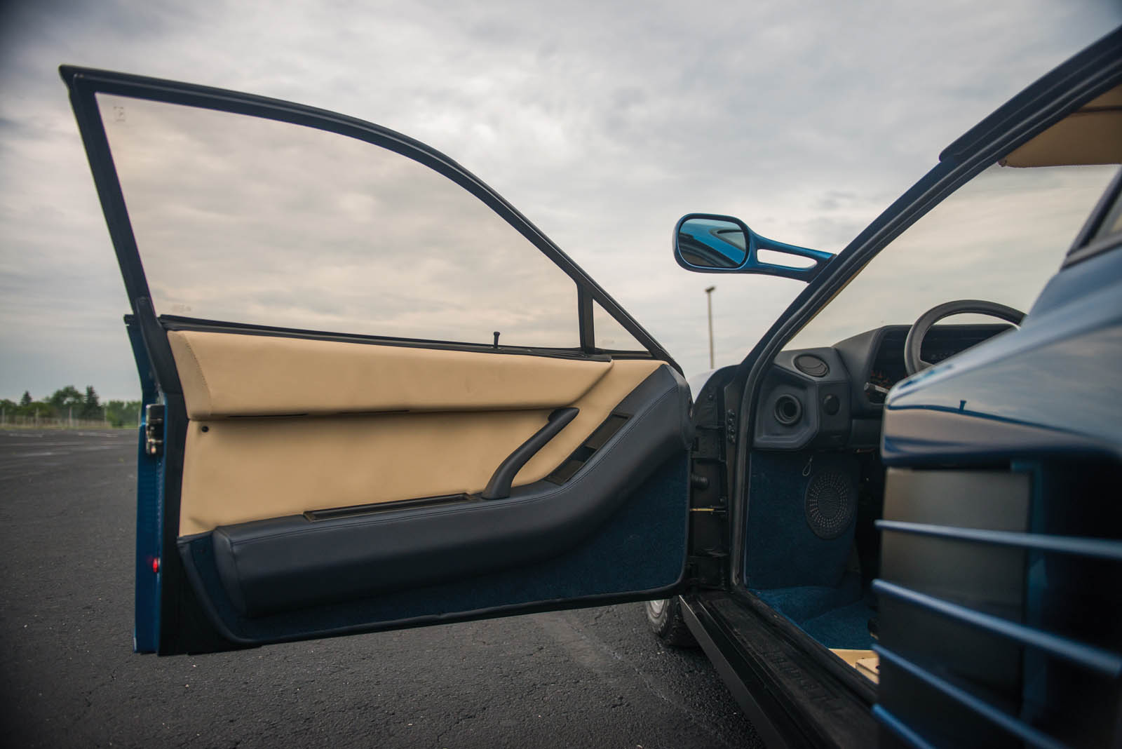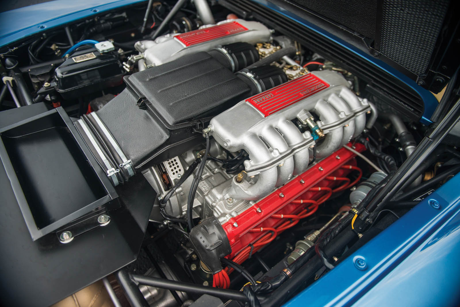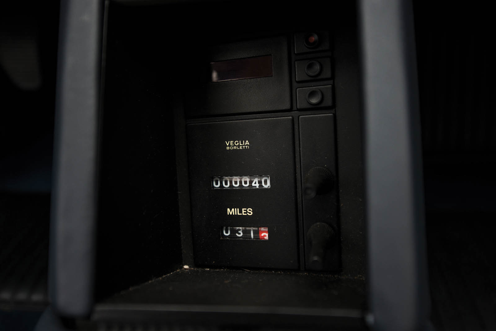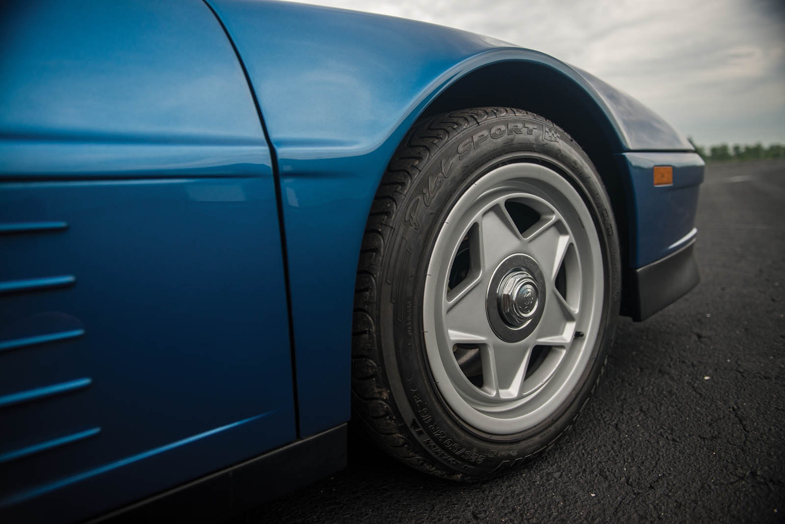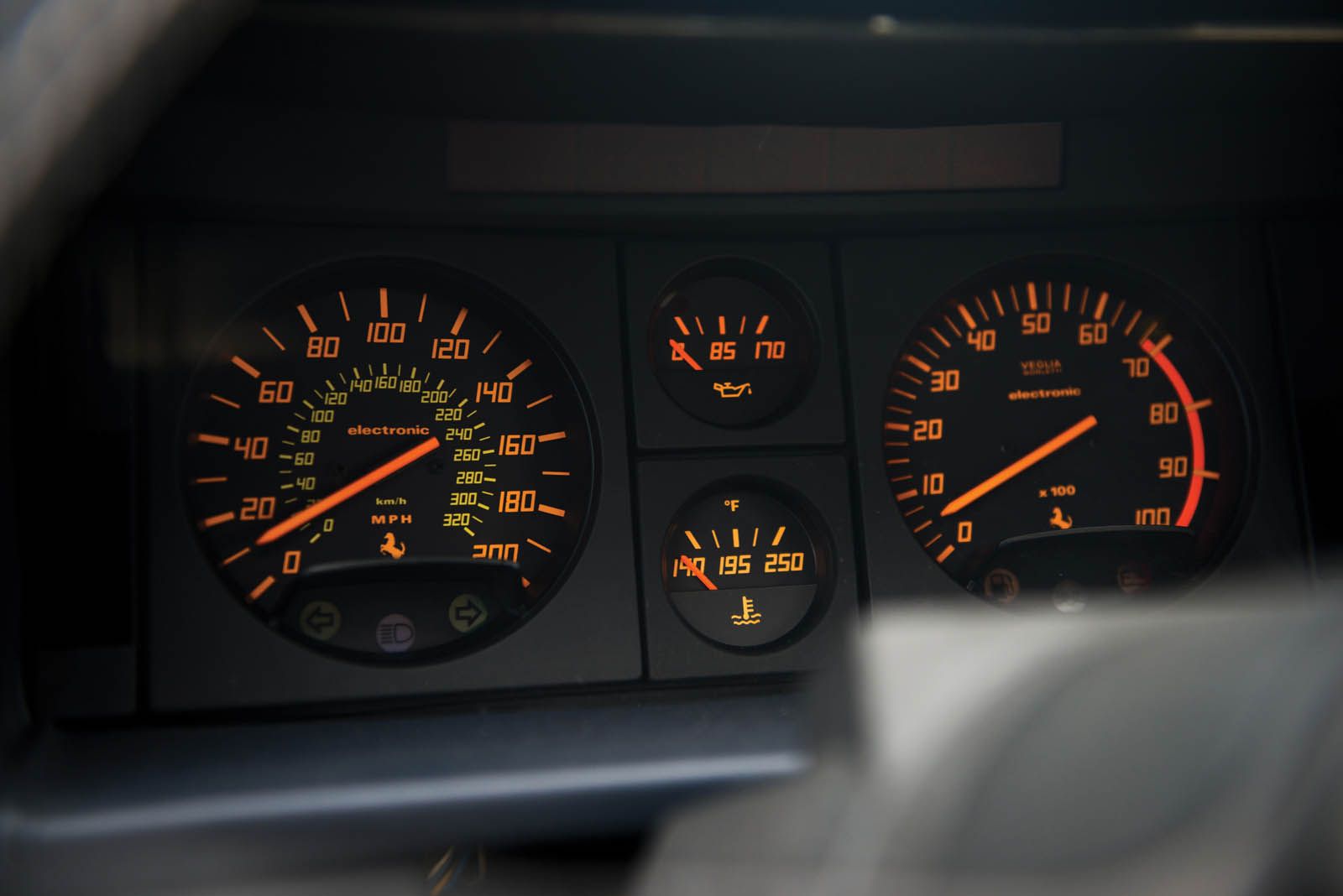 This ’86 Testarossa came in a rather elegant and understated combination or Blu Chiaro Metallizato with a two-tone cream and blue leather interior. It’s the only one with the single “monospecchio” side mirror believed to have been delivered in this unique combination in the United States.