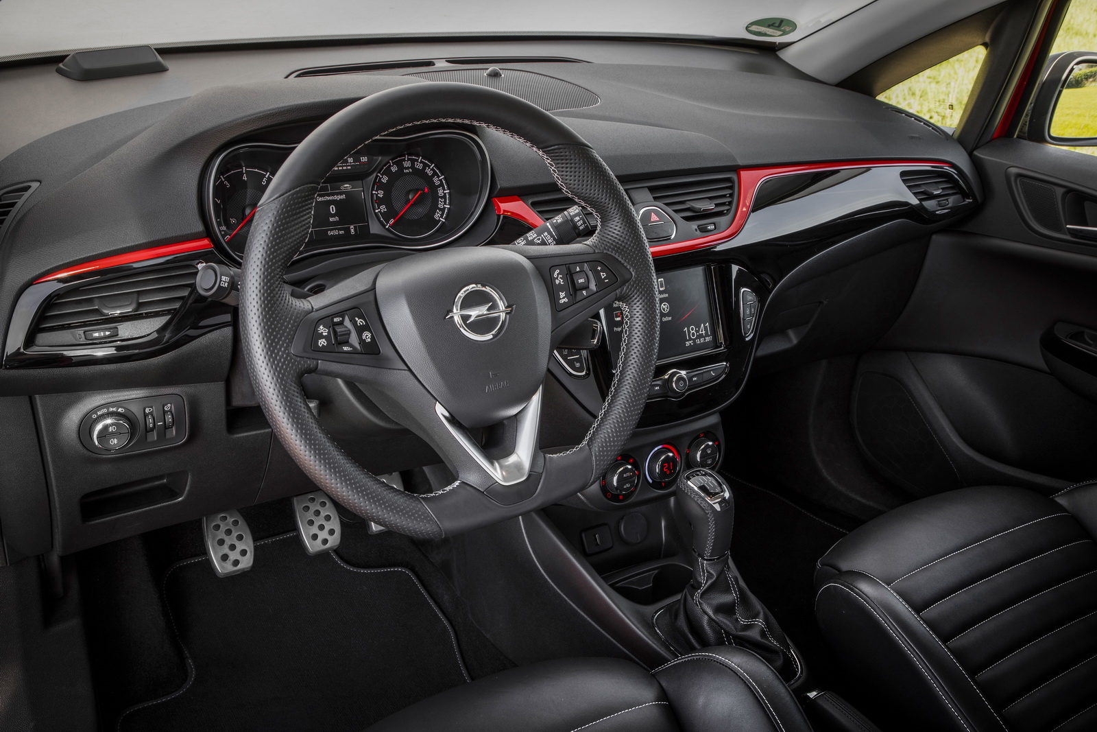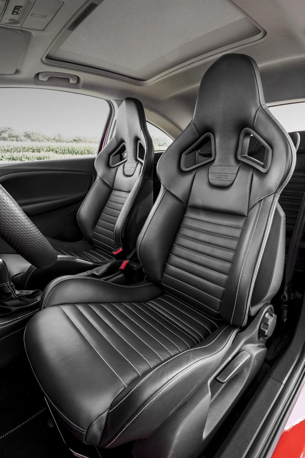 Recaro sport seats, wrapped in leather, flat-bottomed steering wheel, piano black trim, red details, Radio R 4.0 IntelliLink infotainment that provides smartphone connectivity, in addition to the OnStar services, are all found inside, along with tinted rear windows.