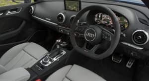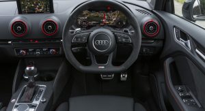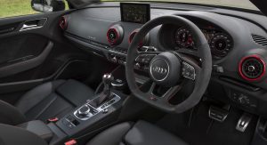 An RS sport suspension with adaptive dampers, front carbon brakes and Super Sport seats dressed in Fine Nappa leather are among the long -and expensive- list of options. Compared to the normal A3s the new Audi RS3 benefits from a 20mm-wider front track and a 14mm-wider rear track, with a set of 19-inch alloys offered as standard.