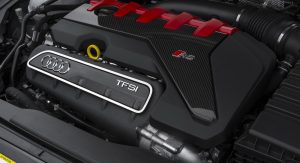 The updated baby RS model now packs 394hp (400PS) and 354lb-ft (480Nm) of torque, courtesy of the most powerful five-cylinder engine ever to be used in a series production Audi.