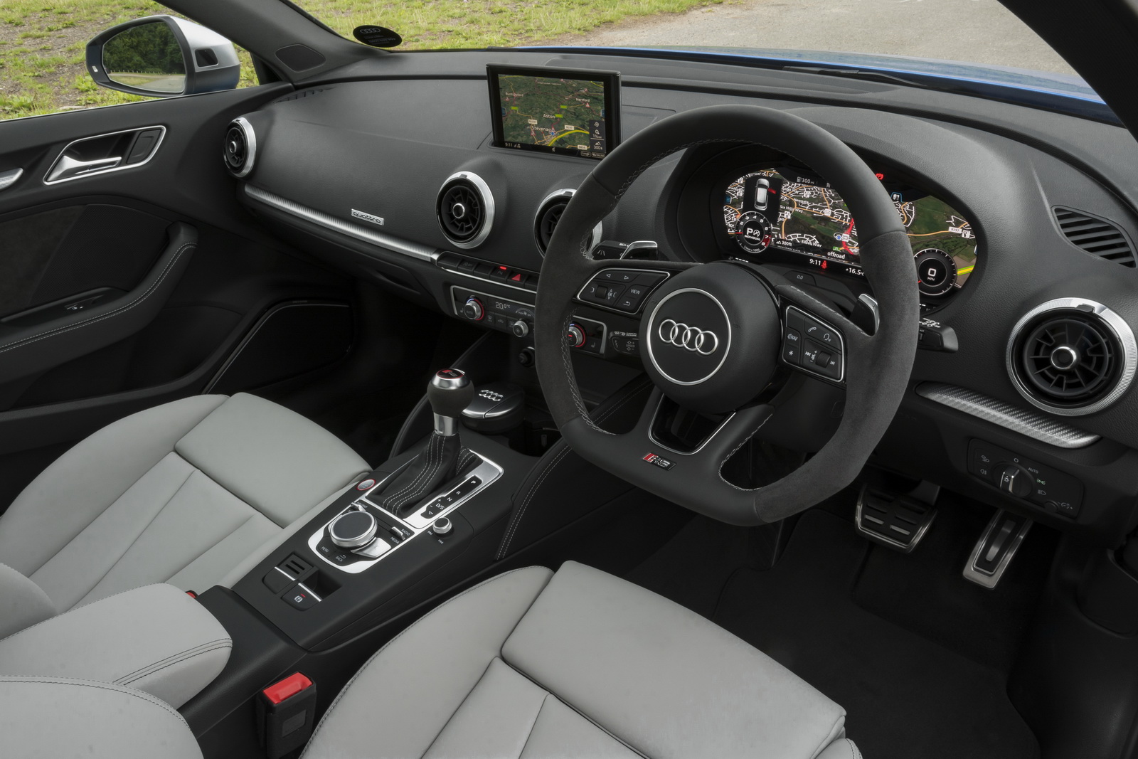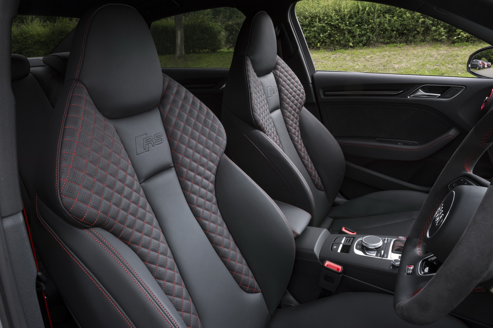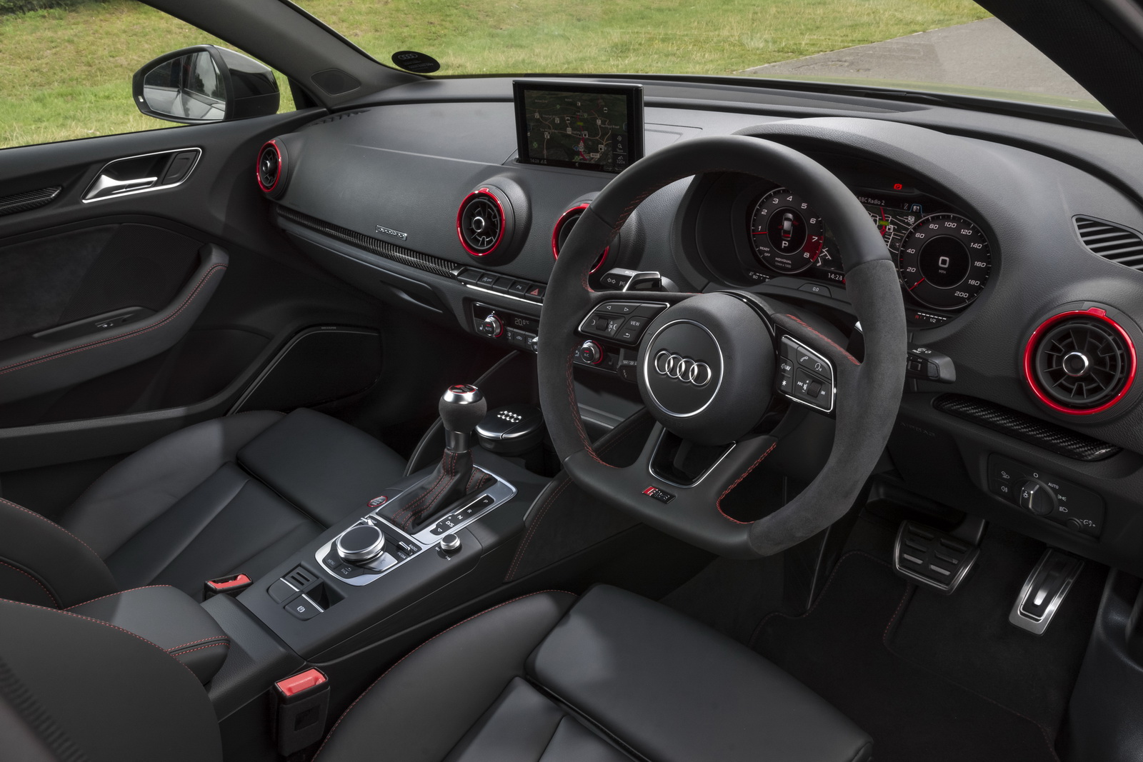 An RS sport suspension with adaptive dampers, front carbon brakes and Super Sport seats dressed in Fine Nappa leather are among the long -and expensive- list of options. Compared to the normal A3s the new Audi RS3 benefits from a 20mm-wider front track and a 14mm-wider rear track, with a set of 19-inch alloys offered as standard.