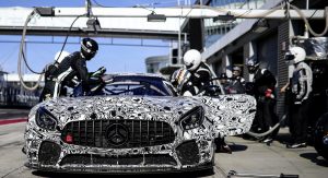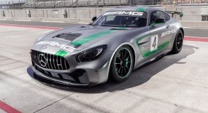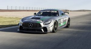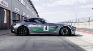 The new race car is based on the AMG GT-R road car and -as the name suggests- it aims to compete in the growing GT4 category, once Mercedes delivers the first examples to customer racing teams towards the end of the year.