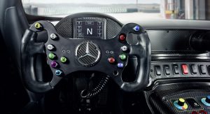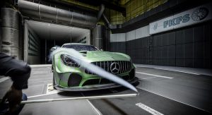 The chassis and the bodywork are made out of a mix of aluminum and carbon fiber, with the structure being a lightweight and very rigid aluminum spaceframe straight from the AMG GT-R. The bonnet and the front splitter are made out of composite material.