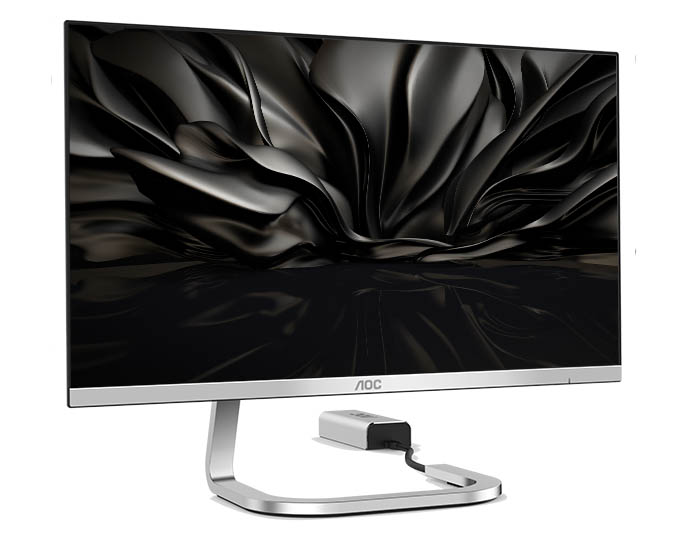 Available in 24- and 27-inch diameters, the AOC PDS monitors are decidedly minimalist in design. Not only do they feature a thin frame and sleek stand, but they integrate the power and connection cables into a single unit to keep clutter down to a minimum.