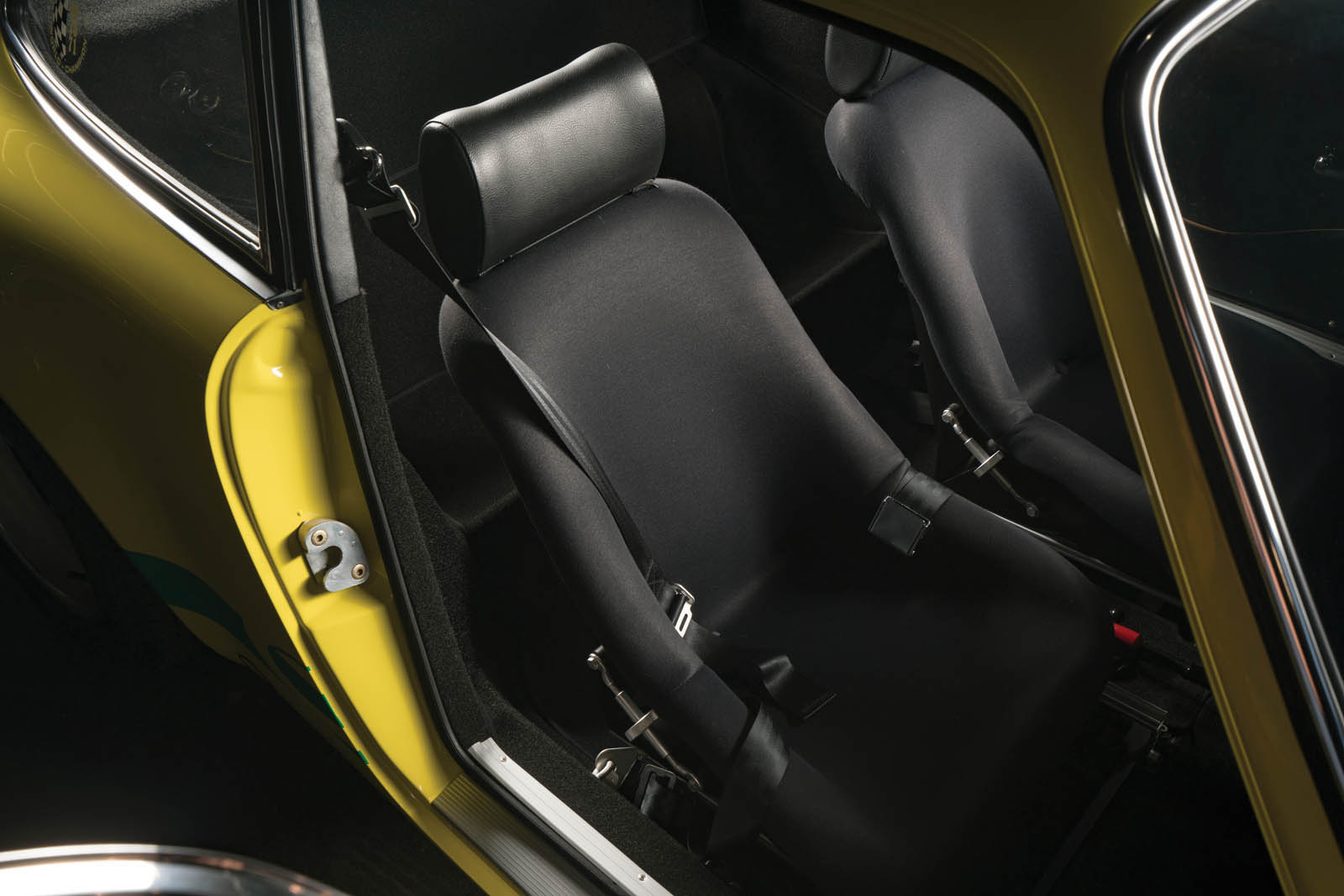 The Lightweight was mechanically identical to the more luxurious Touring model, with a 2687-cc flat six, fuel injection, a stiffer suspension, bigger wheels and brakes, wider rear fenders to fit them in, and a ducktail rear spoiler. Lightweight versions, however, were fitted with thinner-gauge steel bodywork and thinner glass to help shave a good 220 pounds off the curb weight, and making it ripe for competition in the FIA’s Group 4 class.