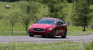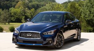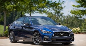 Inside the facelift adds stitching around the instrument panel, a new leather shift knob and steering wheel, spinal support seats and Infiniti’s InTouch services. The 2018 Infiniti Q50 also comes with plenty of driver assistance systems, including Active Lane Control, Intelligent Cruise Control, Distance Control Assist, Backup Collision Intervention, Blind Spot Warning and Intervention, Lane Departure Warning and Prevention, Forward Emergency Braking, and Predictive Forward Collision Warning.