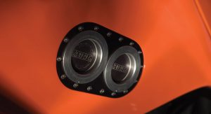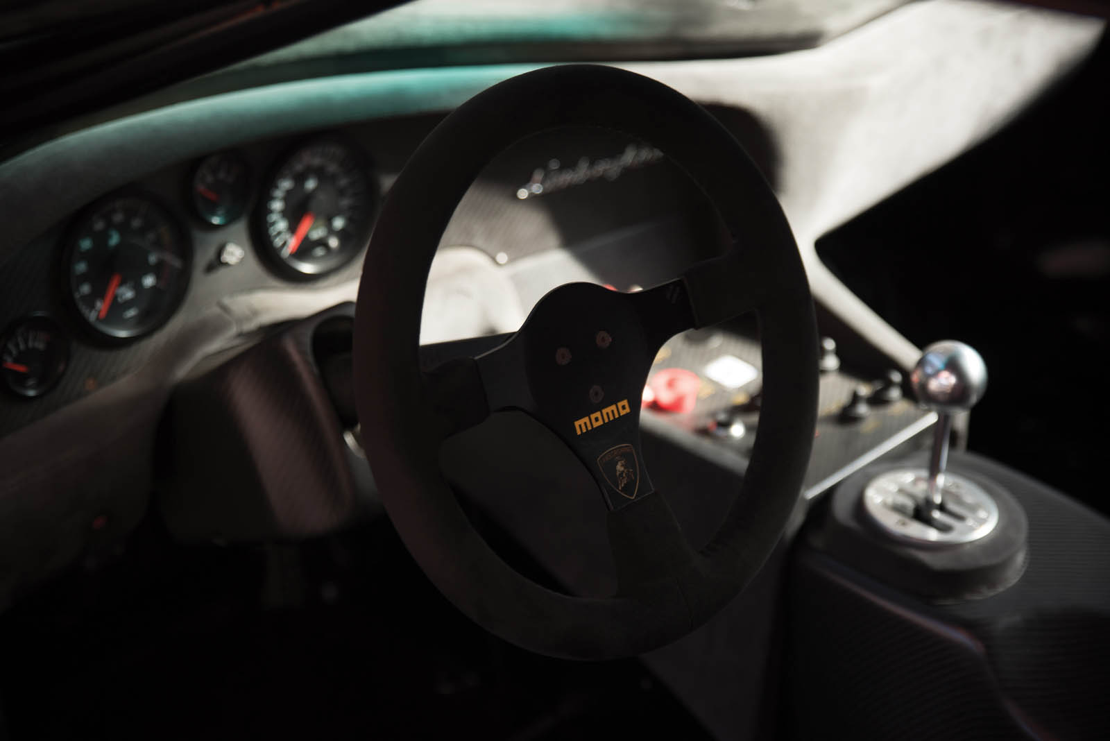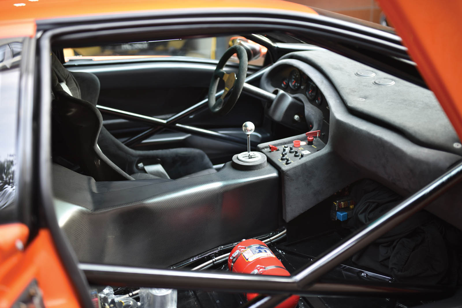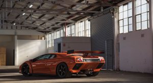 The GTR was equipped with a 6.0-liter V12 engine producing a massive 590 horsepower, which may pale in comparison to what today’s Raging Bulls kick out, but was the most power Sant’Agata had ever put in one of its supercars up to that point. It also featured an old-school five-speed manual transmission (no flappy paddles here), and was stripped out and fitted with competition-spec components, including carbon-fiber bodywork, plexiglass windows, and a huge rear wing bolted directly to the frame.