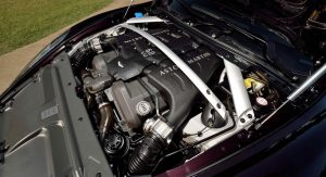 It’s done up in Amethyst Red and an even brighter red leather interior with tan stitching and piano black trim. The emblems are decorated in 24-karat gold, the grille in a magnesium-silver finish, and the 10-spoke alloys diamond-turned. At its heart sits Aston’s long-serving 6.0-liter V12, sending 490 horsepower and 420 lb-ft of torque to the rear wheels through a six-speed automatic transmission.