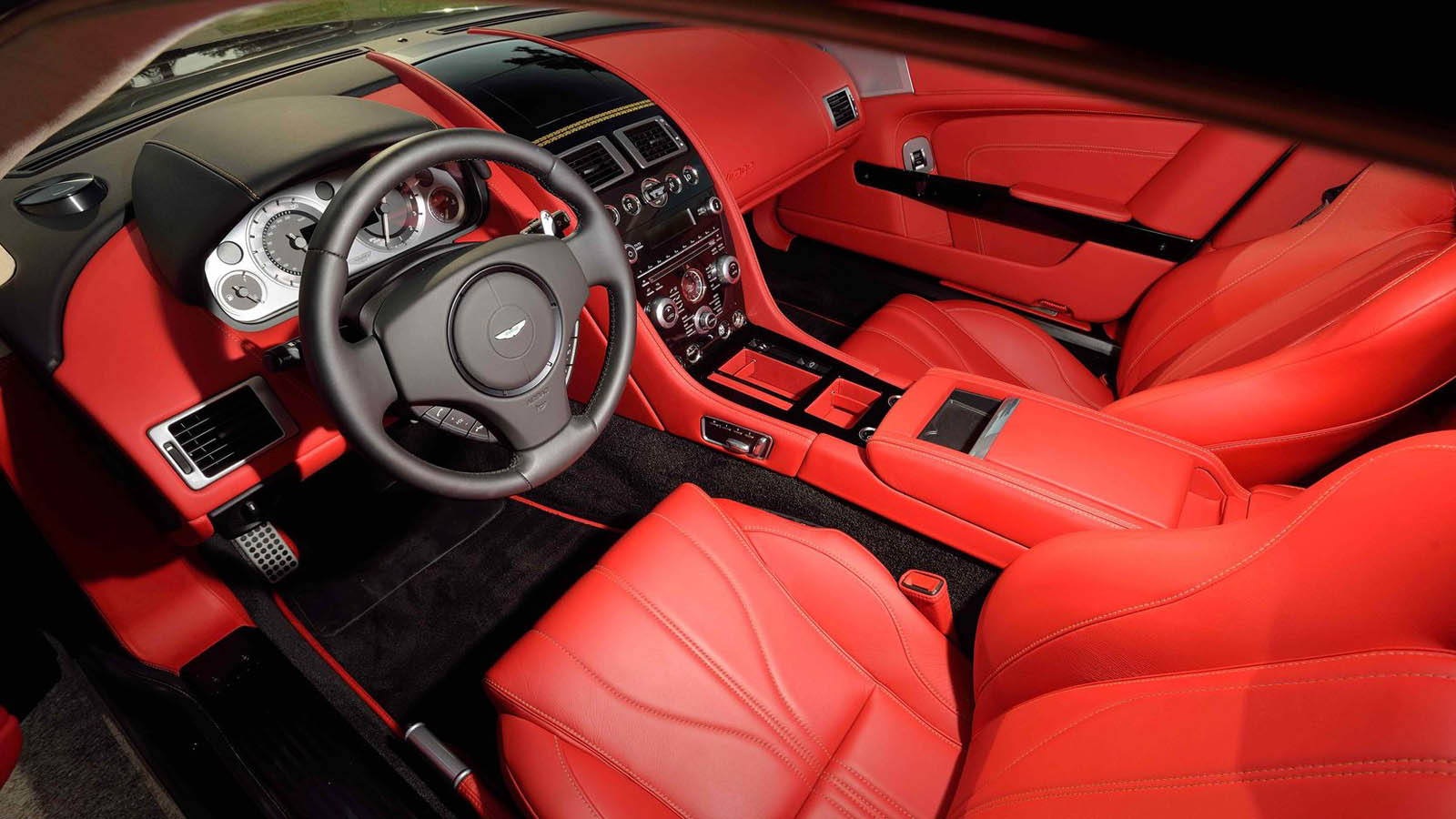 It’s done up in Amethyst Red and an even brighter red leather interior with tan stitching and piano black trim. The emblems are decorated in 24-karat gold, the grille in a magnesium-silver finish, and the 10-spoke alloys diamond-turned. At its heart sits Aston’s long-serving 6.0-liter V12, sending 490 horsepower and 420 lb-ft of torque to the rear wheels through a six-speed automatic transmission.