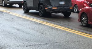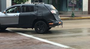 This time, our reader Tre Davis spotted a camouflaged prototype of the 2018 Jeep Cherokee running around downtown Pittsburg, PA. Unfortunately the photos don’t reveal what’s going on Cherokee’s front end, an area that proved to be deeply polarizing with the adoption, and execution, of the double headlight setup.