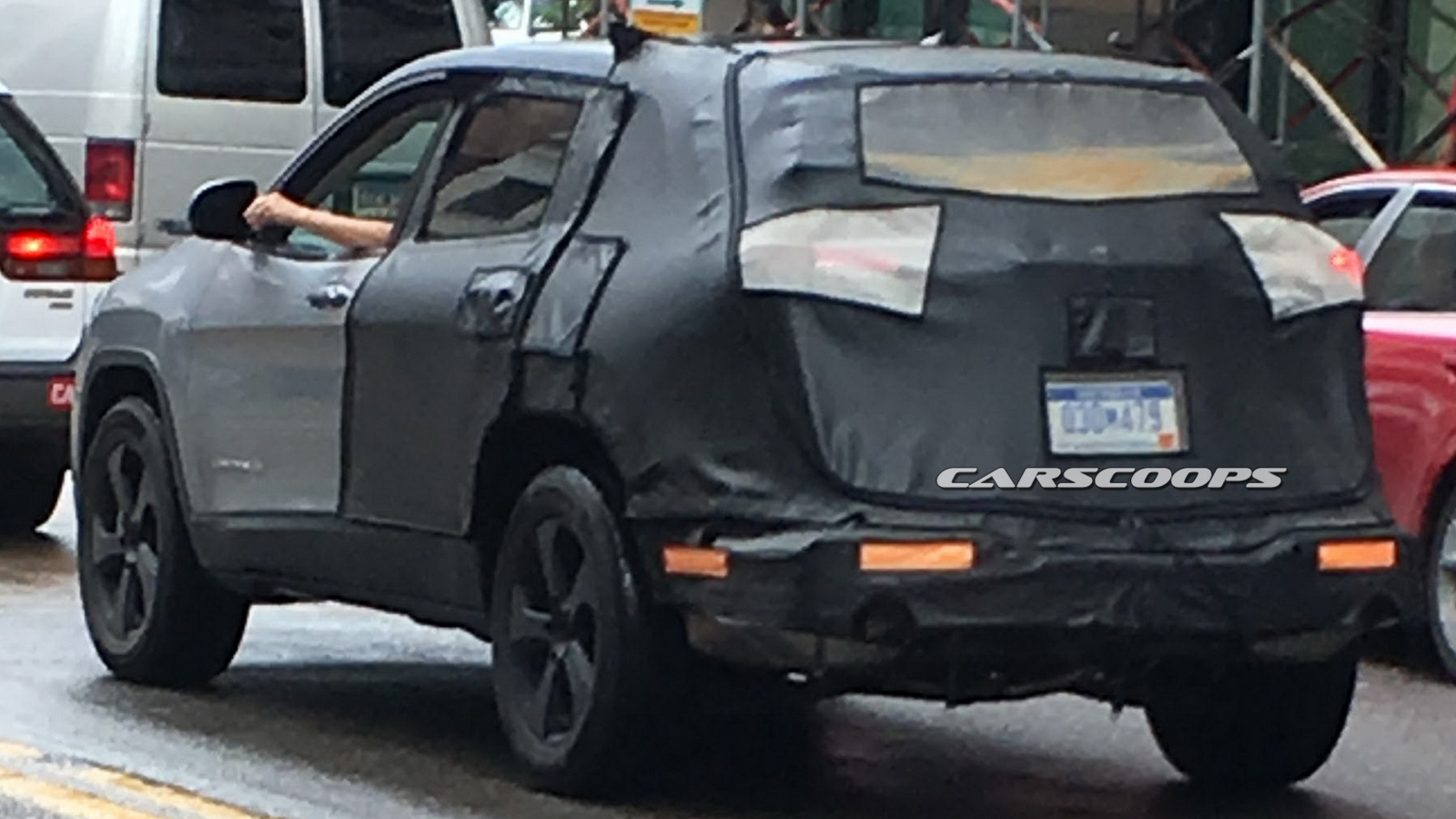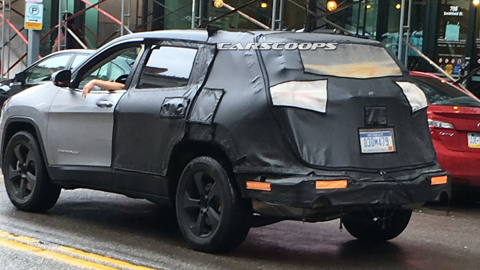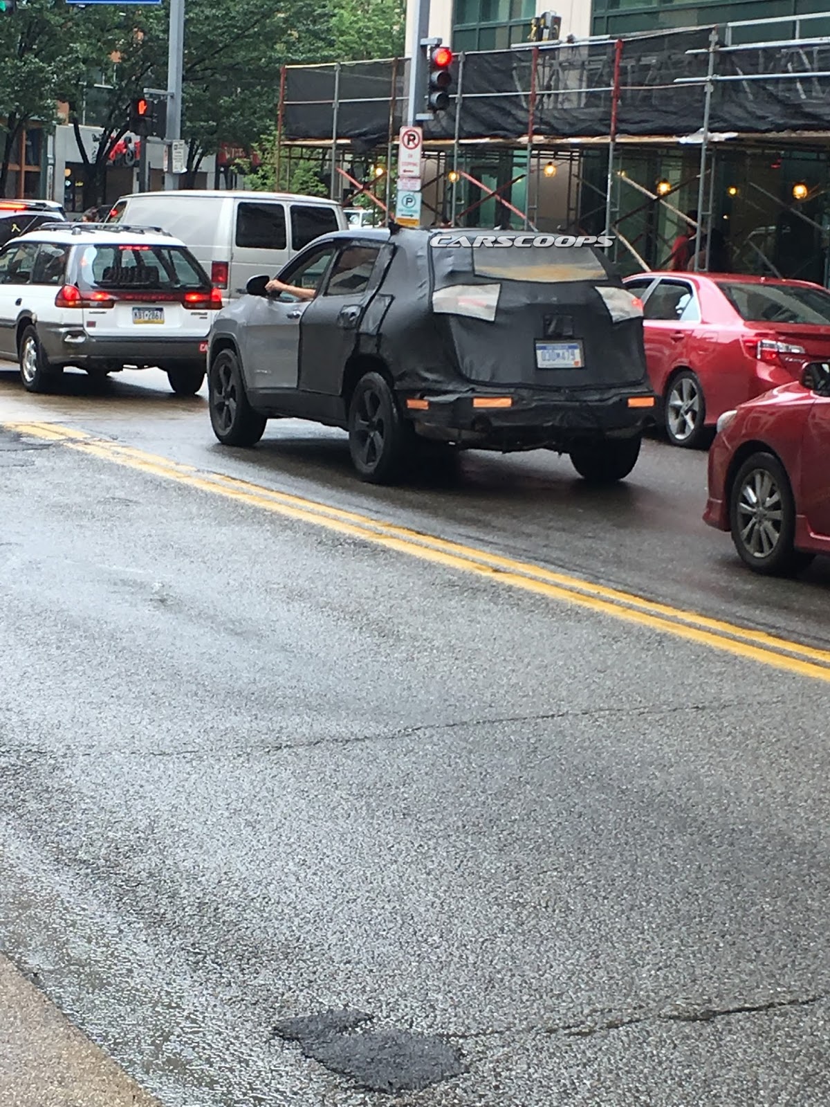 This time, our reader Tre Davis spotted a camouflaged prototype of the 2018 Jeep Cherokee running around downtown Pittsburg, PA. Unfortunately the photos don’t reveal what’s going on Cherokee’s front end, an area that proved to be deeply polarizing with the adoption, and execution, of the double headlight setup.