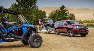 Power is provided by a 5.3-liter V8 engine that produces 355 hp (264 kW) and 383 lb-ft (518 Nm) of torque. This enables the model to tow up to 6,600 pounds (2,993 kg) in its base configuration and up to 8,600 pounds (3,900 kg) with the optional max trailering package.