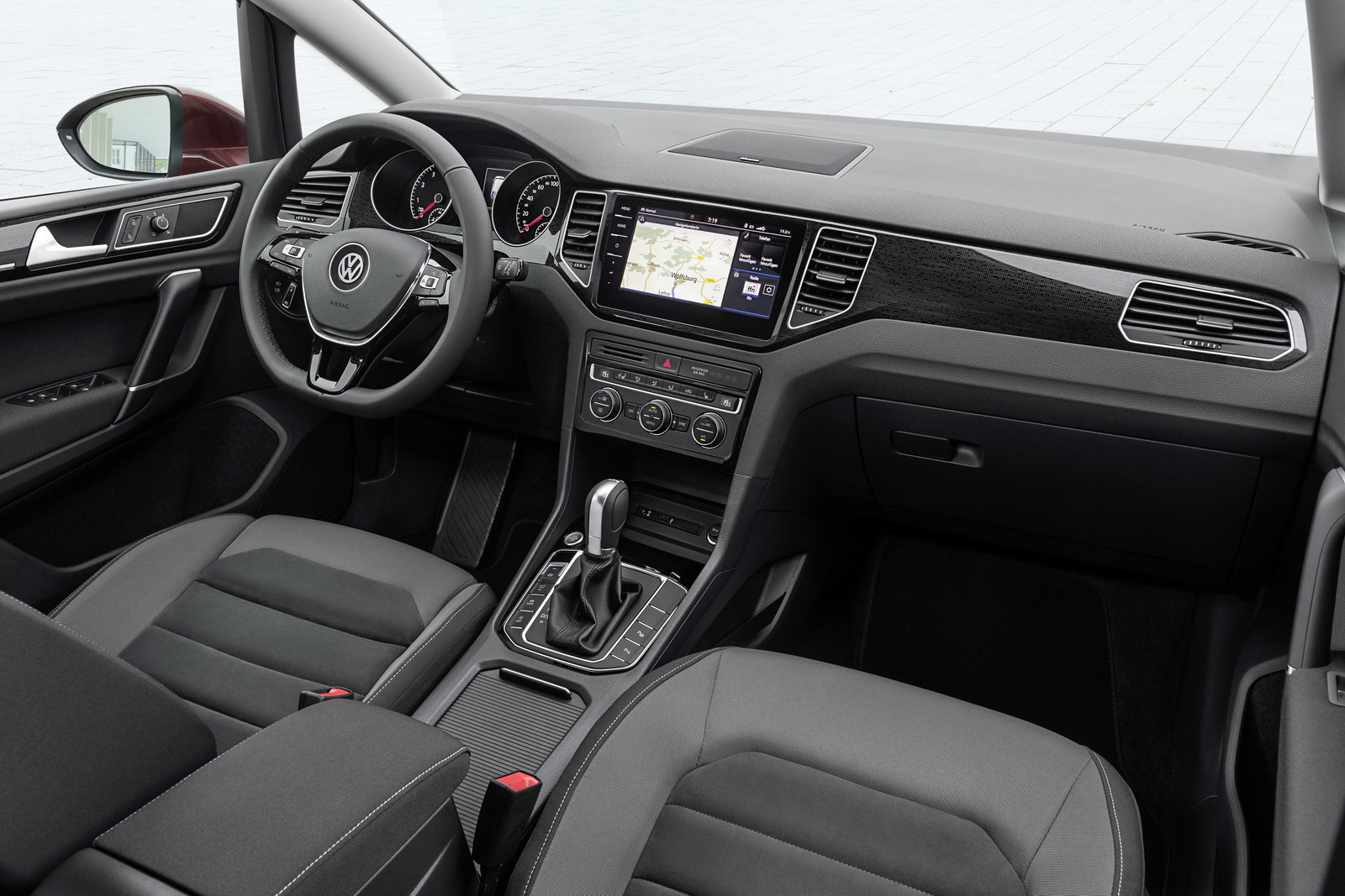 Inside, the 2018 Volkswagen Golf Sportsvan has received new decorative trim, fabrics, and leather seats, in addition to the Discover Pro navigation system that features a 9.2-inch display, gesture control, and five capacitive touch buttons along the left border. The Media Control app is also part of the offerings, which provides an interface to the infotainment system for smartphones and tablets, allowing users to control the system from their mobile device.