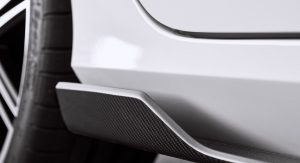 All cars get a new front splitter, side sills, and rear spoiler extension, made from carbon fiber, which increase downforce by 30 percent, grip, and high-speed stability. Other changes include carbon fiber side mirror casings, high-gloss black Polestar diamond cut wheels, and a new exterior color called Bursting Blue Metallic.