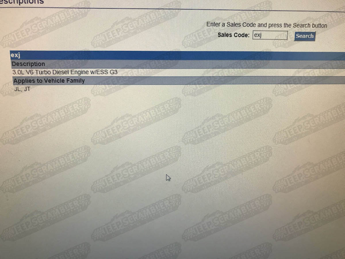 Codenamed internally as JT, the new Jeep Scrambler will share the 3.0-liter V6 turbodiesel engine with the regular Wrangler JL. This was sort-of confirmed by the FCA sales code for the particular engine (EXJ) that revealed the program codes for each vehicle destined to receive it.
