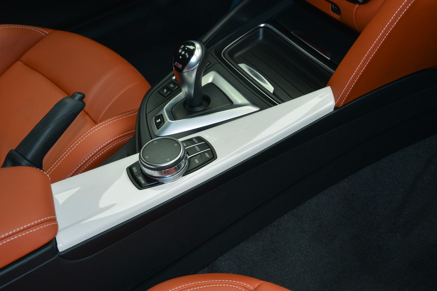 While sporting the same front and rear carbon fiber spoilers, it has a more elegant interior – a mixture of black and light brown leather with blue inserts across the dash and on the door panels.