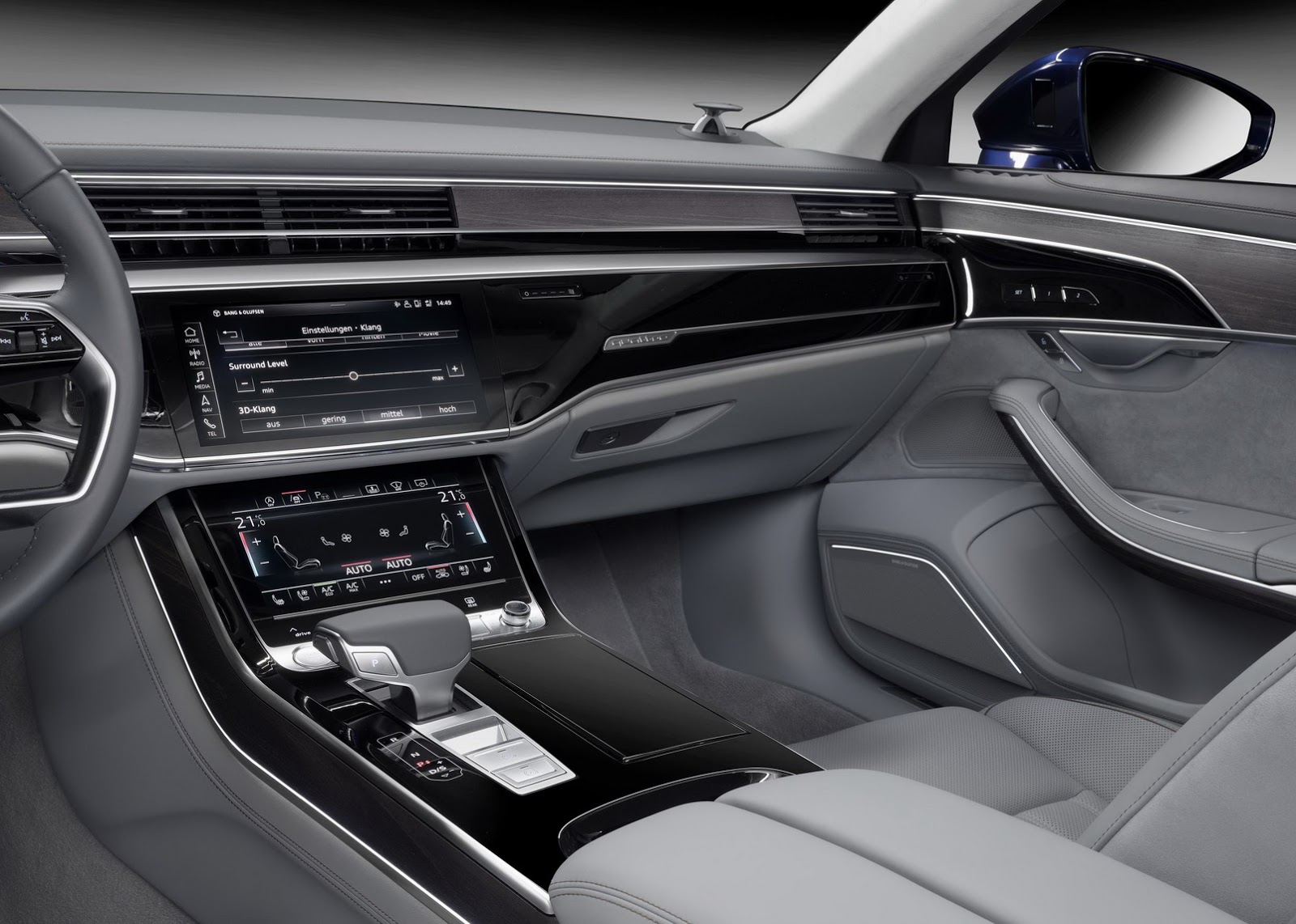 Audi first introduced 3D sound to their lineup back in 2015 with the latest-generation of the Q7 SUV. However, the A8 will feature two new full-range loudspeakers in the A-pillars and another two in the headlining above the rear seats, providing a full surround sound experience.