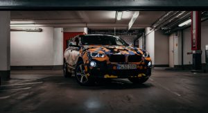 As for the car’s colorful outfit, it’s a wrap featuring orange, gray and black highlights, with a little bit of yellow on the bottom. According to BMW, this design was based on a digital pattern, expressing the “innovative spirit and future orientation of the BMW Group.”