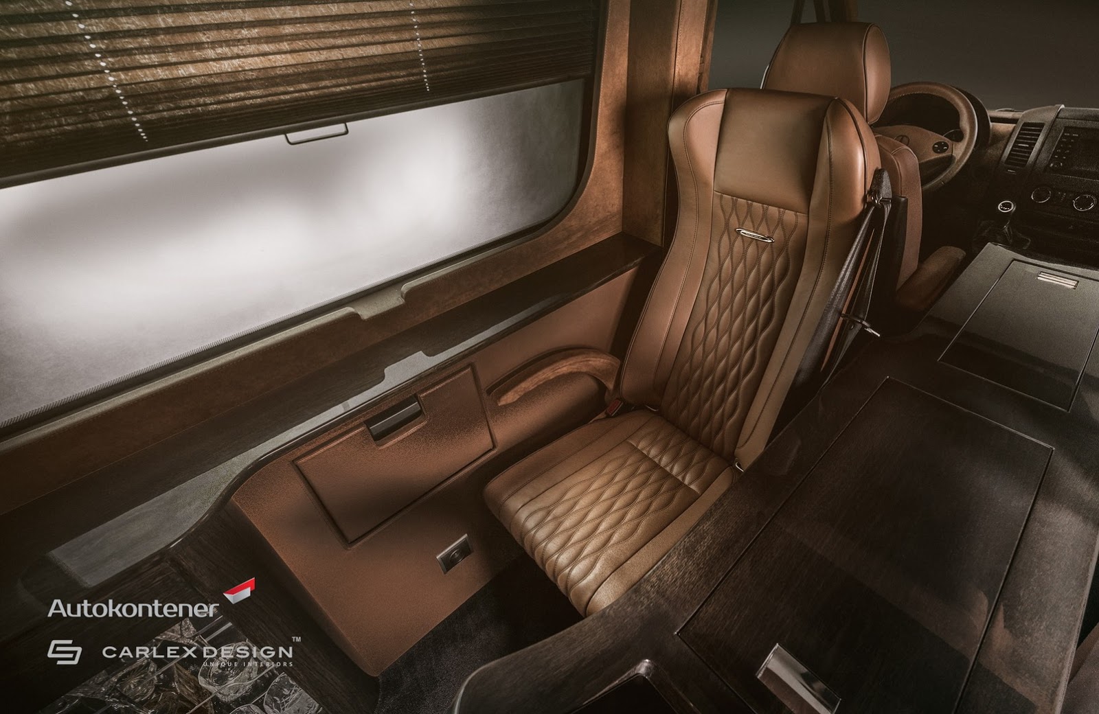 By the way, if a Sprinter isn’t big enough for you, Carlex will gladly help modify a semi-trailer, offering you multiple levels and a living room-like ambiance.
