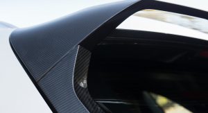 Move along side the car and you’ll also notice the carbon fiber mirror caps, whereas the rear end features a carbon fiber spoiler and a diffuser, engulfing the exhaust tips.