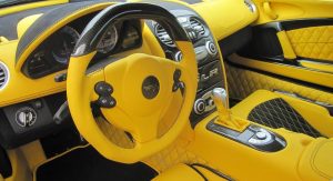Aside from the full carbon body exterior, this car also features carbon inside the cabin – on the steering wheel, center console, dashboard and door panels. What do you think of all that yellow leather though?
