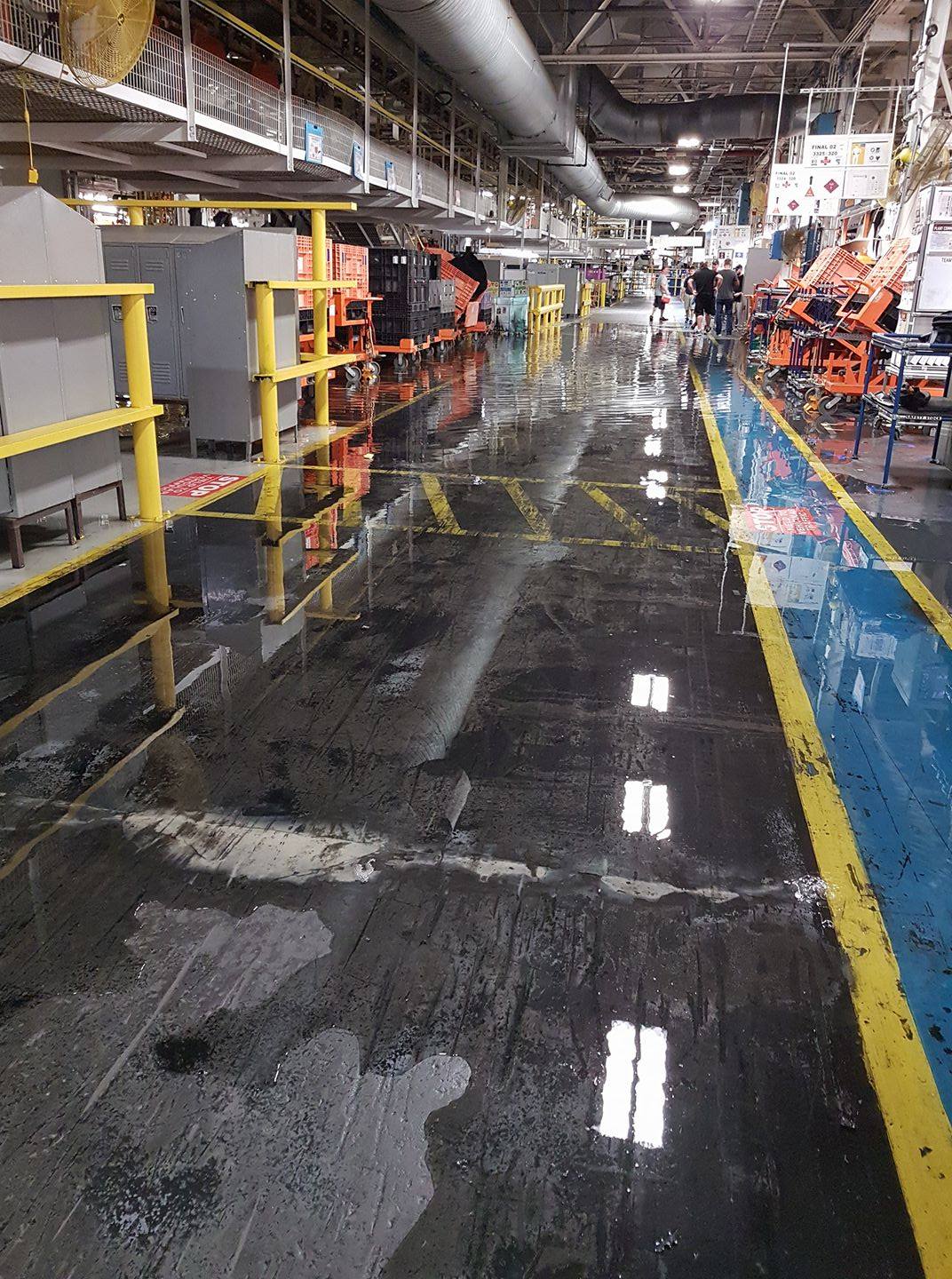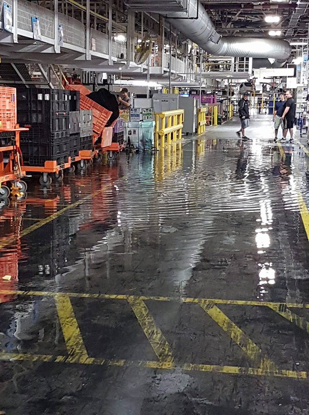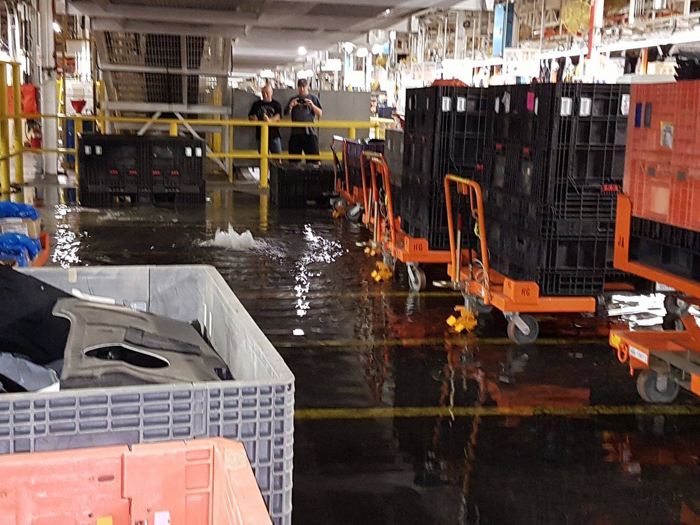 The rain started falling Monday evening, with the plant and surrounding roads started flooding late in the afternoon of Tuesday, with cars left stranded and underwater just yards away from the plant’s main employee entrance, AutoNews reports. Photos of the flooded factory floors were posted on Facebook.