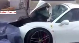 According to CarNewsChina, the driver of the white Ferrari, which was reportedly brand new, lost control of the car and crashed into a wall, before being hit by a bus.