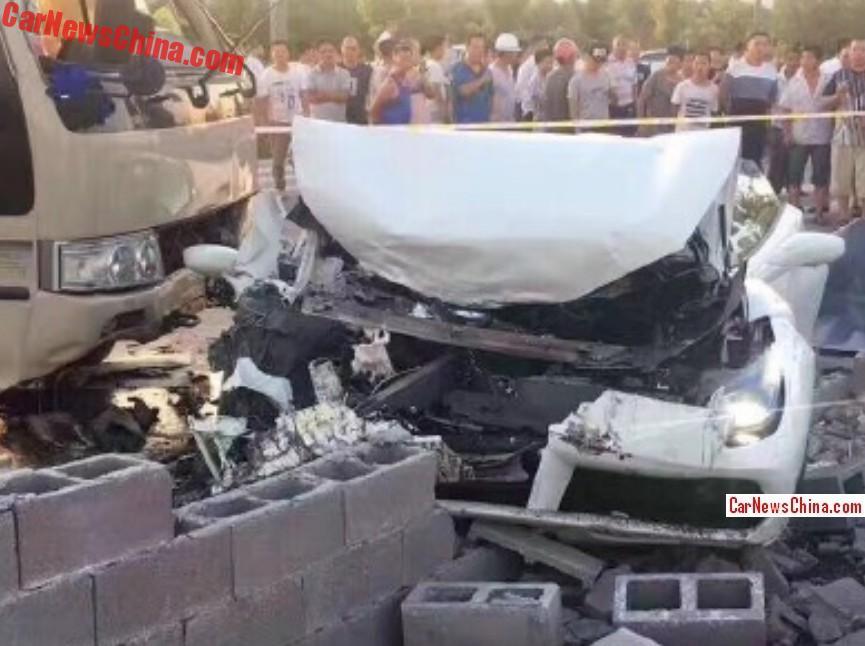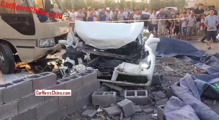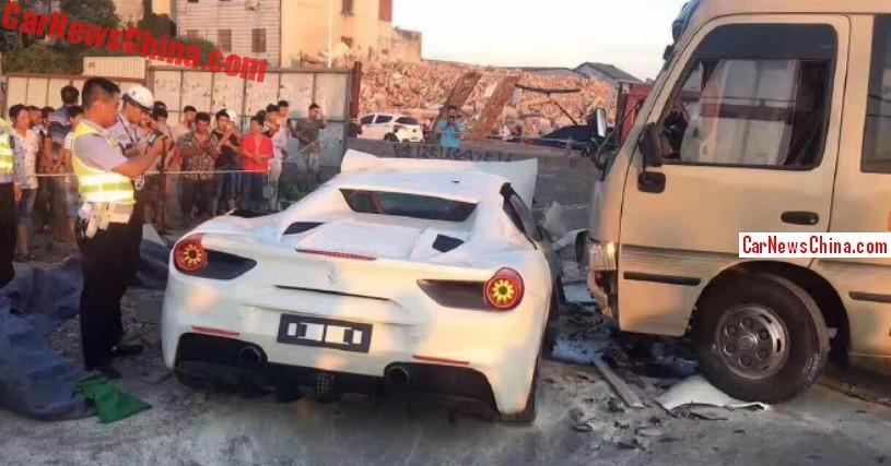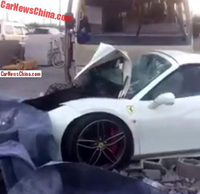 According to CarNewsChina, the driver of the white Ferrari, which was reportedly brand new, lost control of the car and crashed into a wall, before being hit by a bus.