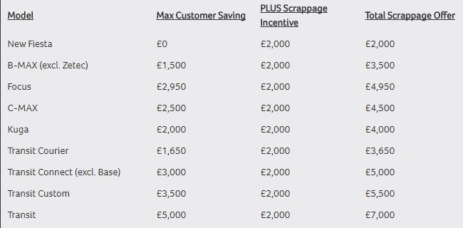 The incentives start from £2,000 for the new Fiesta and can reach up to £7,000 in case of the customer opting to buy a new Transit. The full list of available new models can be found below.