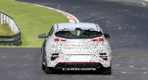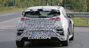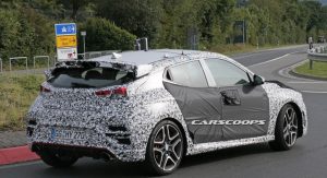 The bigger question, of course, is what lies underneath that vented hood. As it is, the Veloster packs a 1.6-liter inline-four, producing either 132 horsepower in standard guise or 201 in the Turbo. The i30 N meanwhile dials things up to 246 hp, or 271 with the optional Performance Package. If Hyundai’s as serious as it appears to be, the Veloster N could up those figures to about 300 horses – or, at least, so we hope.