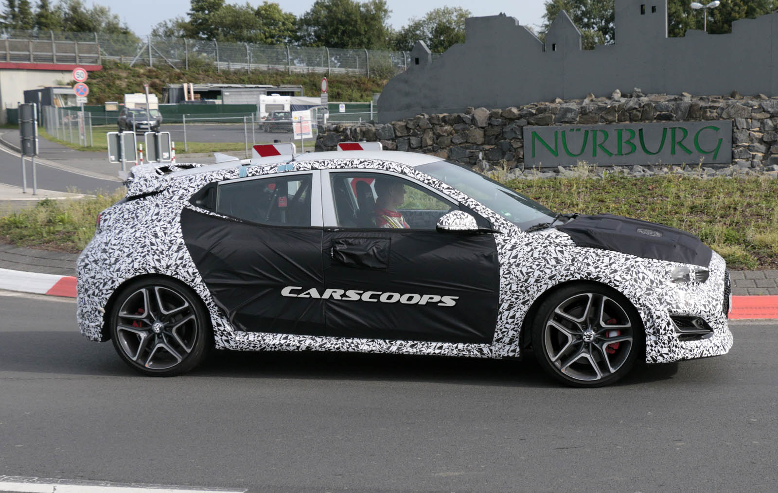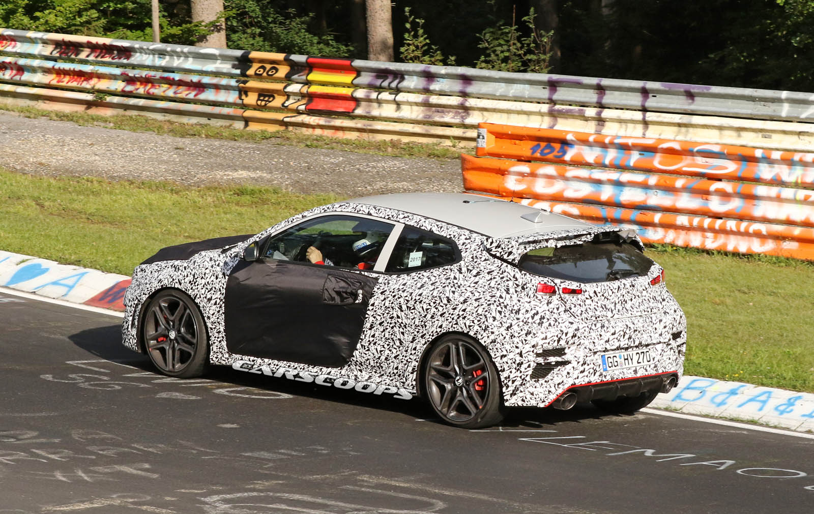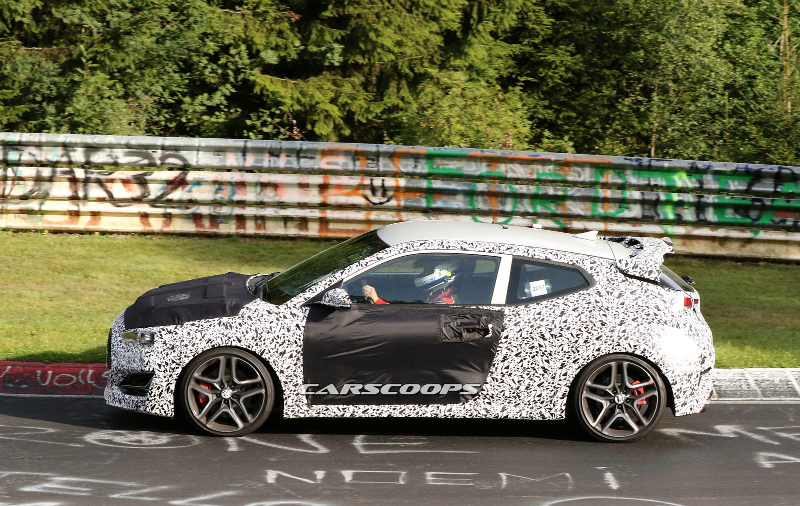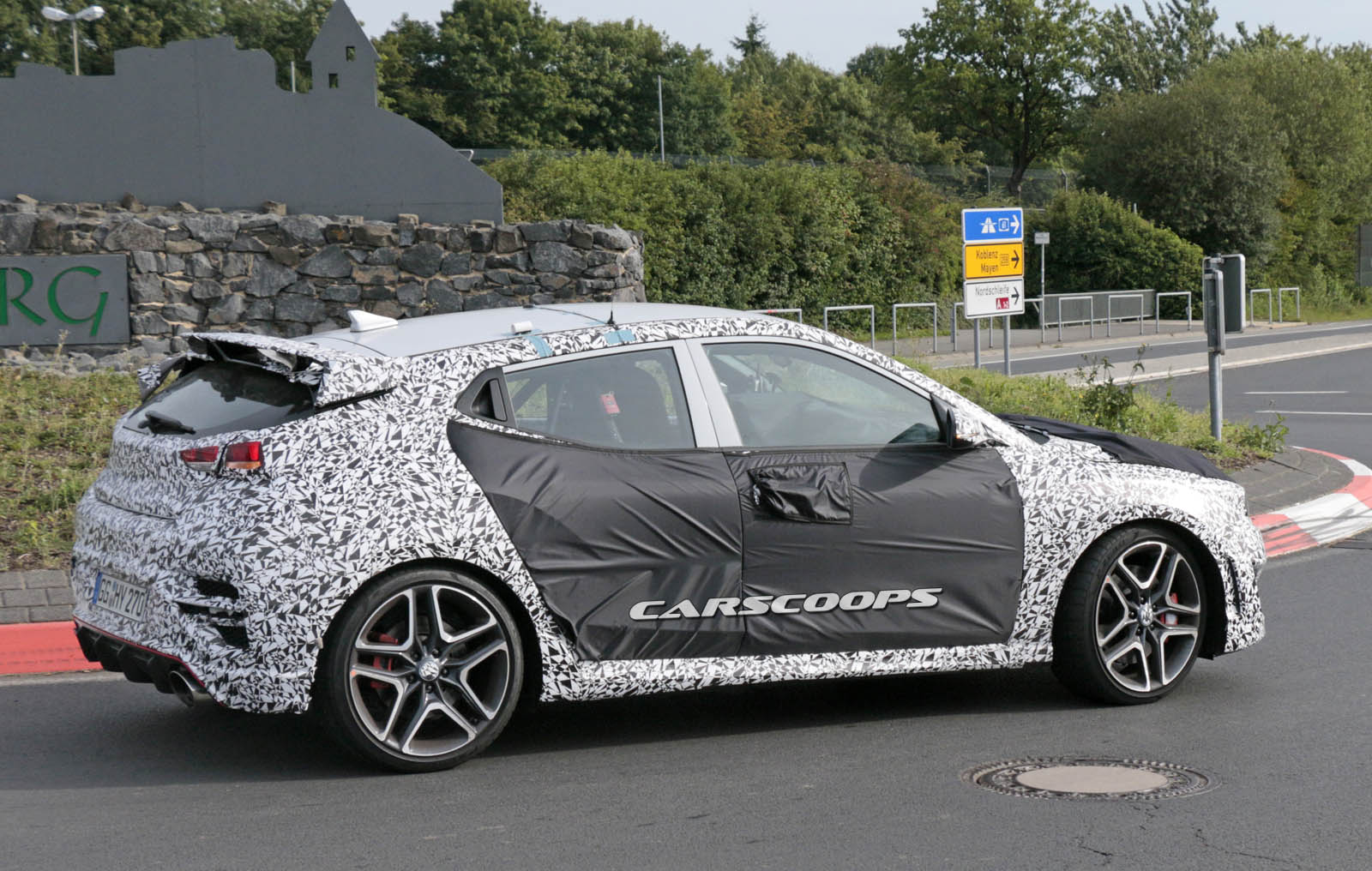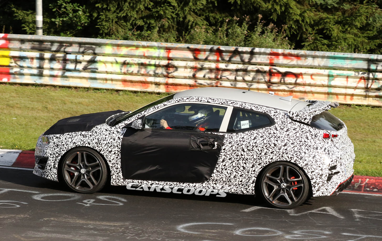 The bigger question, of course, is what lies underneath that vented hood. As it is, the Veloster packs a 1.6-liter inline-four, producing either 132 horsepower in standard guise or 201 in the Turbo. The i30 N meanwhile dials things up to 246 hp, or 271 with the optional Performance Package. If Hyundai’s as serious as it appears to be, the Veloster N could up those figures to about 300 horses – or, at least, so we hope.