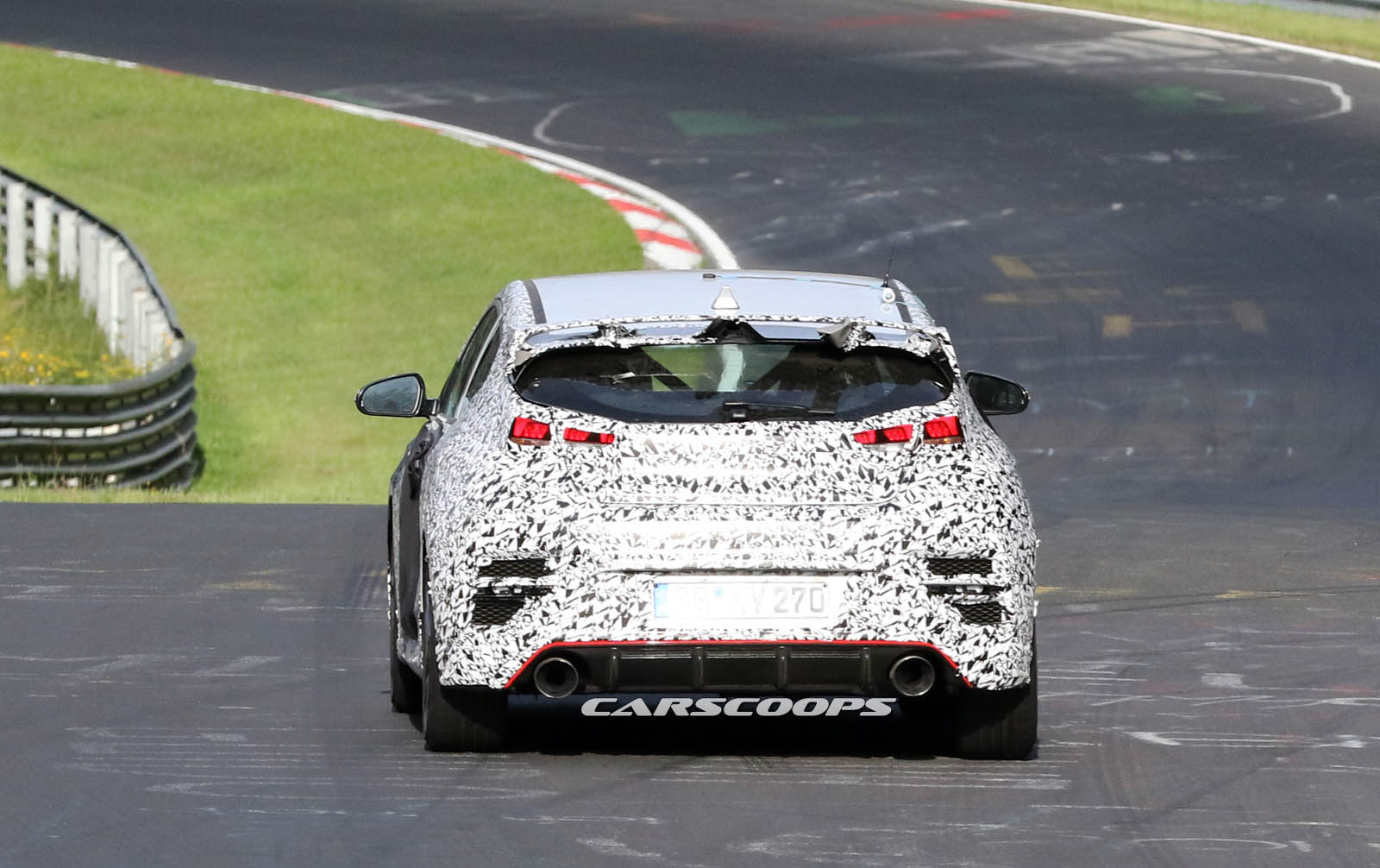 What we can see as a result are all manner of hi-po goodies: a front splitter, big rear wing, underbody diffuser, dual exhaust tips, bigger wheels… it even looks like it has a roll cage inside, though that could be just for testing.