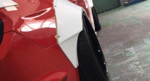 Beyond the obvious inclusions of bolt-on fender flares, Liberty Walk’s creation includes a huge ducktail spoiler at the rear, extended side skirts, a bespoke hood, added front splitter and a bold rear diffuser.