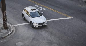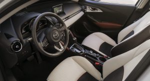 Moving further up in the range means getting into the CX-3 Grand Touring ($25,165 FWD / $26,415 AWD), which packs Parchment or black leather with red accents and Lux Suede upholstery, adaptive LED headlights, LED fog lights, LED daytime running lights, Mazda Navigation, a full color Active Driving Display head-up unit and paddle shifters.