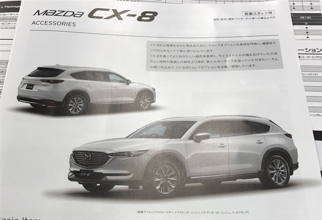 Mazda is about to introduce a new SUV in its Japanese lineup in the form of the CX-8, a slightly shorter version of the CX-9 and a few photos of its brochure have found their way online ahead of its official reveal.