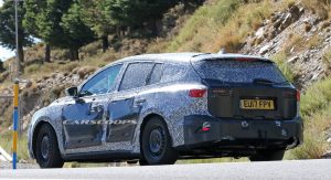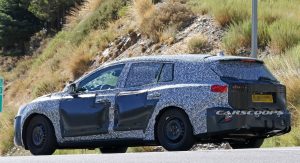The camouflage hides a number of styling details but the rear windows appear significantly larger than on the outgoing model. We can also see a more pronounced shoulder line and a slightly larger rear spoiler.