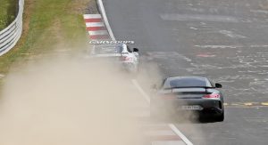 Our spies also spotted a camouflaged car doing some hot laps on the ‘Ring in front of a regular GT R for benchmarking purposes. While there’s still no official confirmation, it looks like this is the rumored Black Series model.