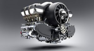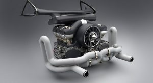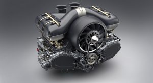 The first engine to come out of this collaboration will be a naturally aspirated 4.0-liter that can rev over 9,000rpm, featuring four-valve heads, titanium con-rods, aluminum throttle bodies with carbon fiber trumpets, a carbon air box, an titanium-Inconel exhaust system and a 500hp rating, matching essentially the latest -but water-cooled- 911 GT3.