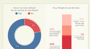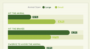 Of those surveyed, 79 per cent said they had or almost had hit an animal while driving and that most think it is better to actually hit a small animal than try to swerve around it or brake before making contact. When it comes to larger animals however, including deer, over 60 per cent of respondents said the best thing to do is brake to avoid an impact.