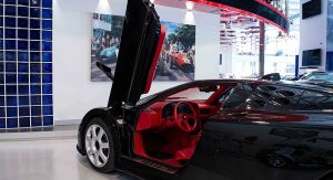 As you can see, it’s painted black, which a) looks rather striking with the red interior, and b) was far less common than the French Racing Blue or light silver in which most of them were made. On top of that, it’s an SS model (shorthand for Supersport), with its 3.5-liter quad-turbo V12 amped up to 611 horsepower (instead of 550 in the GT version).