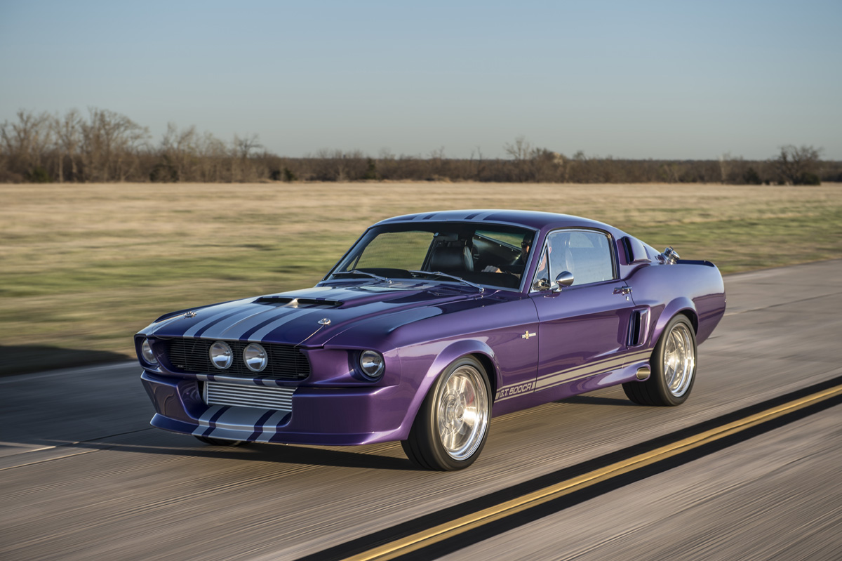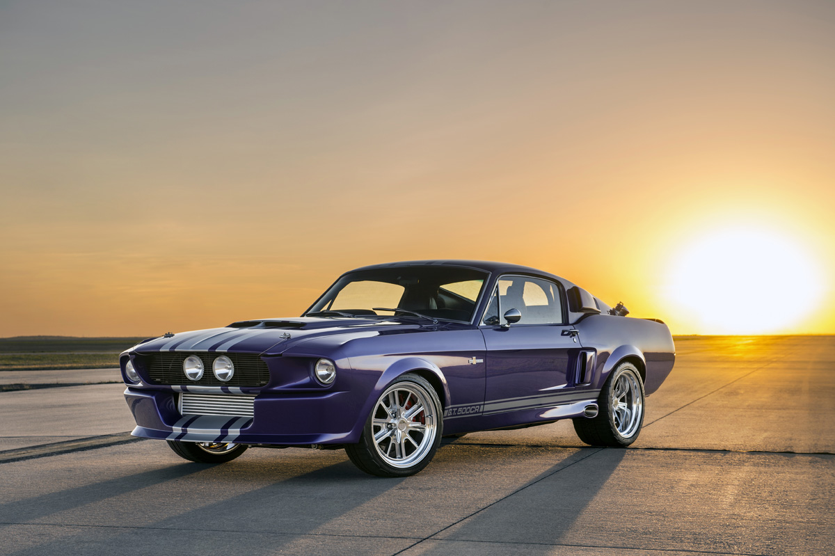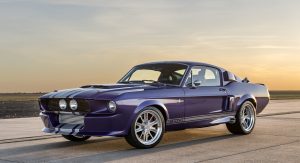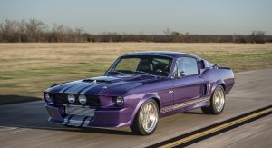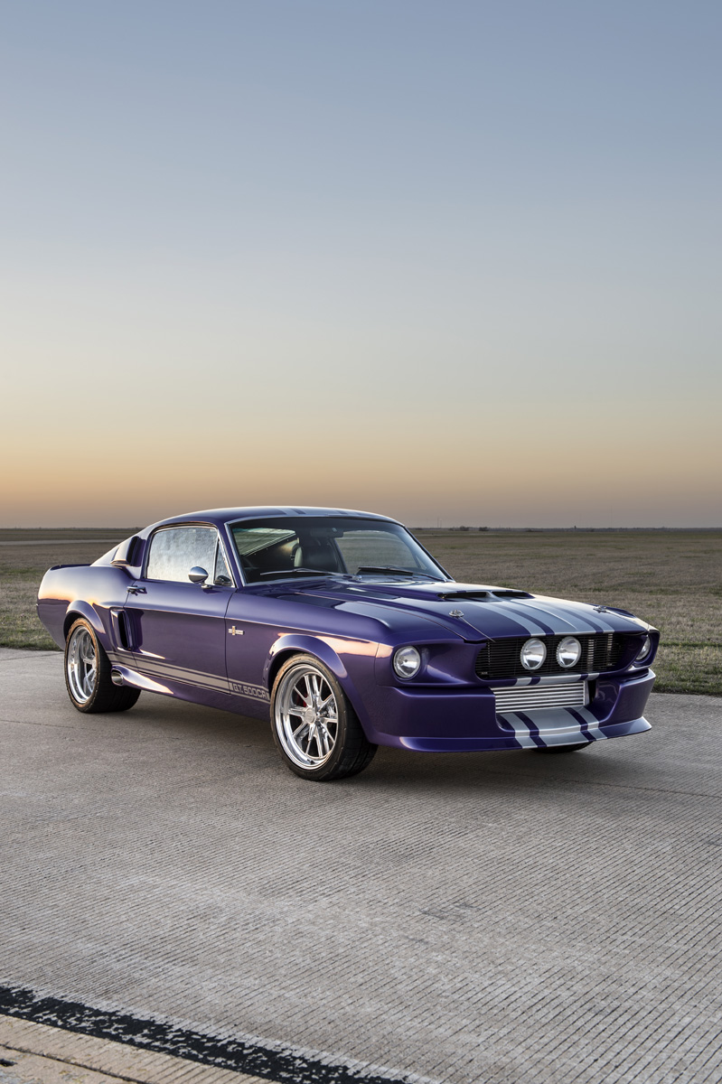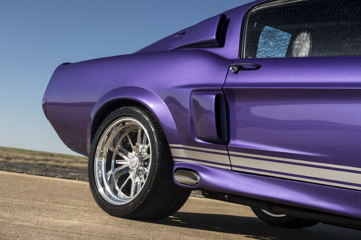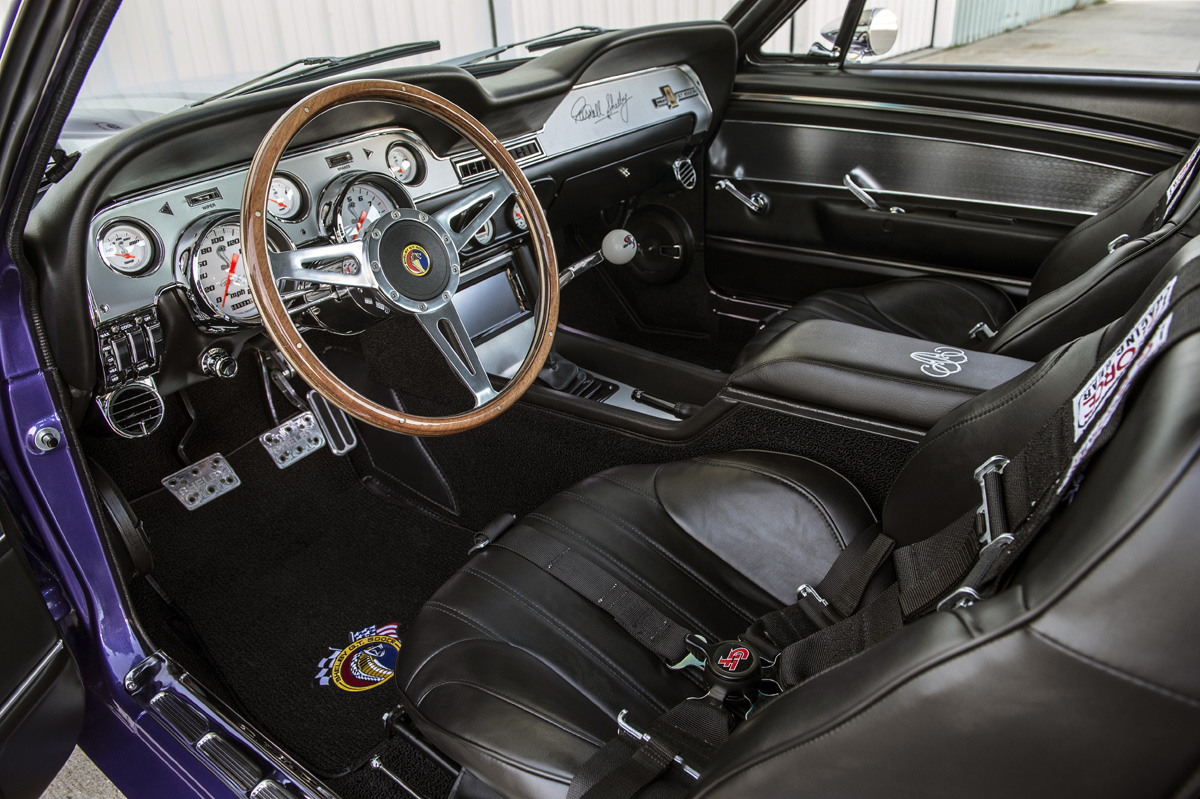 The Oklahoma-based company specializes in re-creating classic pony cars, including its ’67 Mustang platform chosen by the Middle Eastern gentleman who also opted for the full Shelby treatment and a deep purplish blue shade the manufacturer refers to as “burple.”