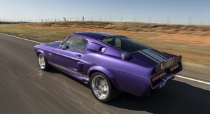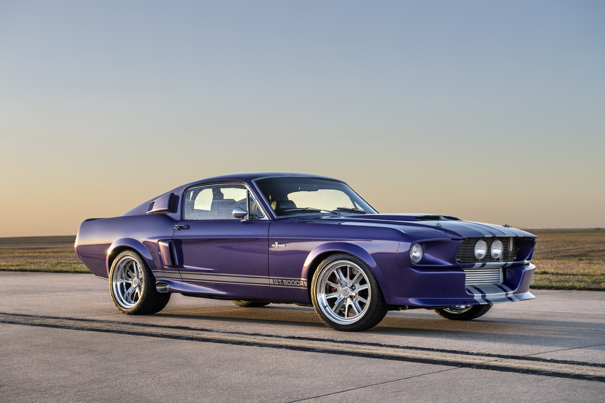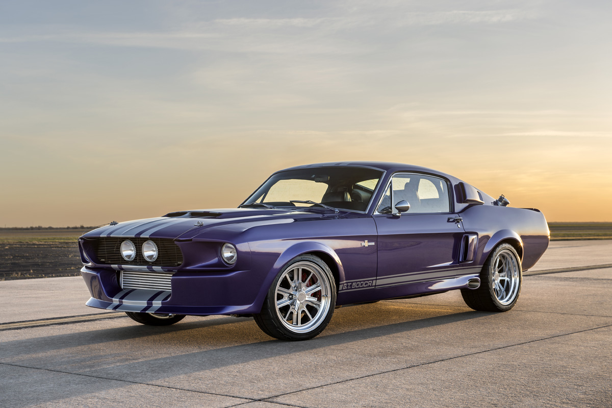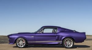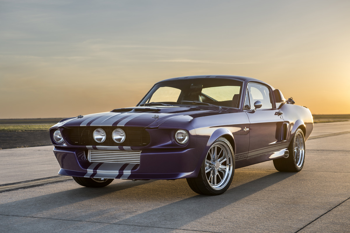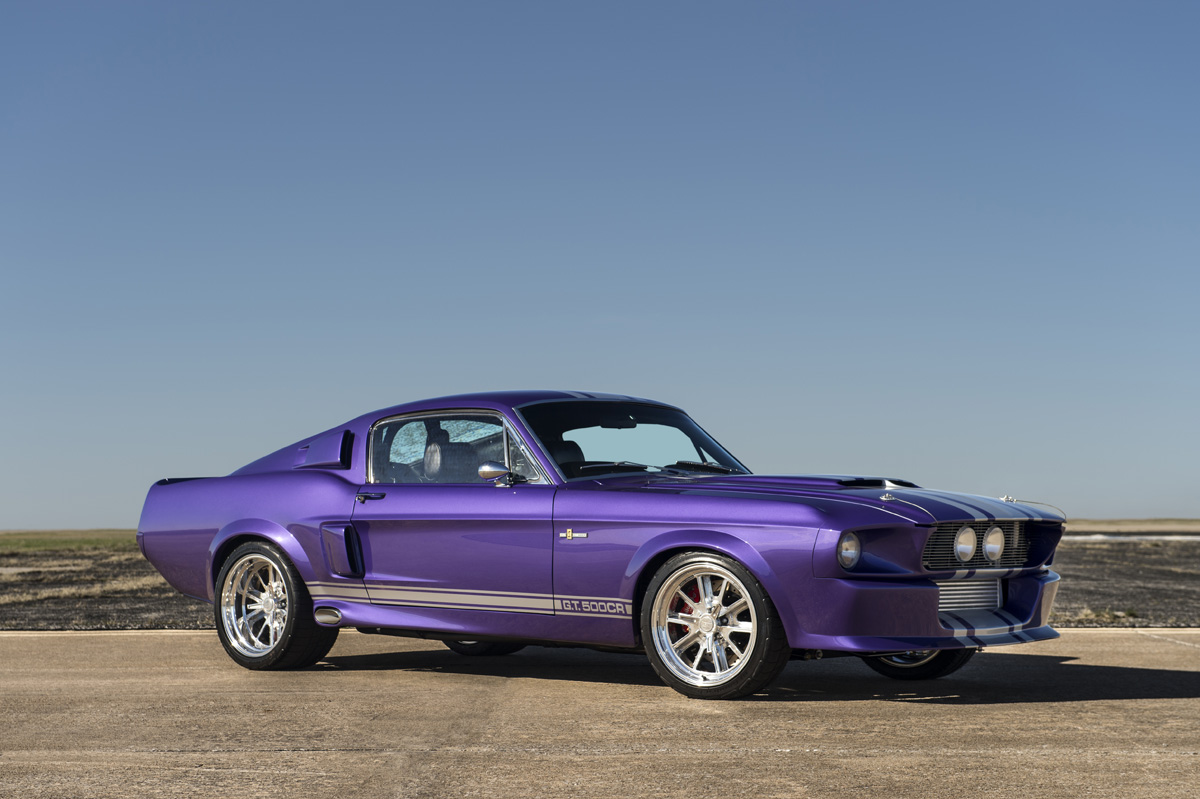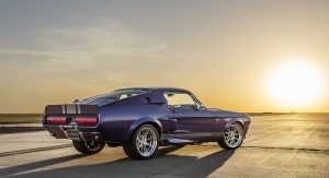 The Oklahoma-based company specializes in re-creating classic pony cars, including its ’67 Mustang platform chosen by the Middle Eastern gentleman who also opted for the full Shelby treatment and a deep purplish blue shade the manufacturer refers to as “burple.”