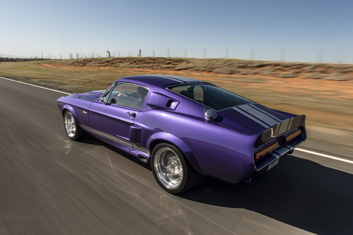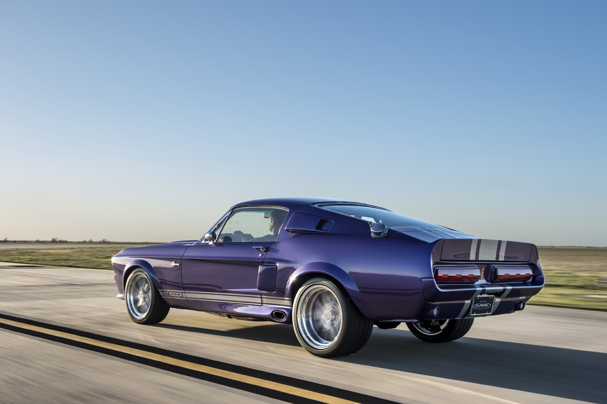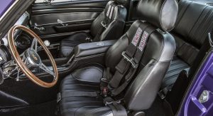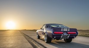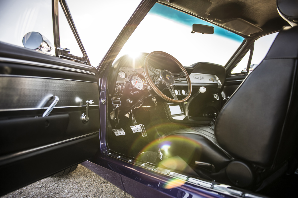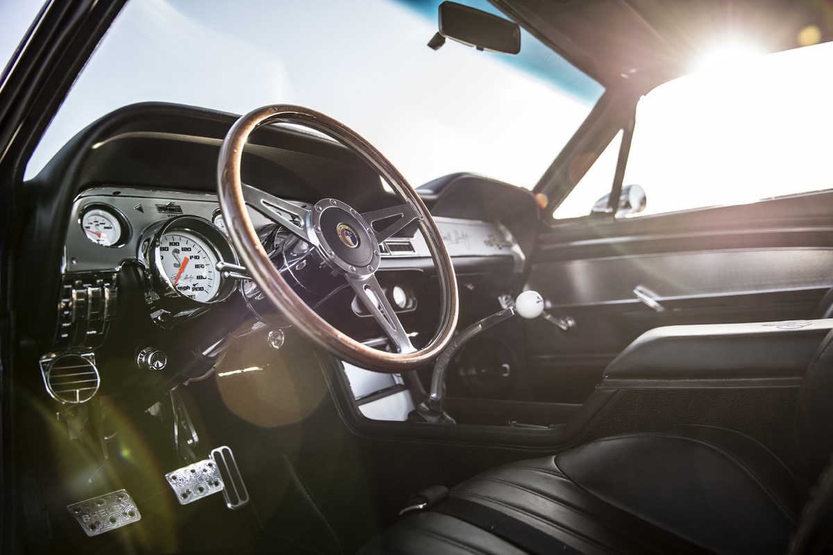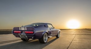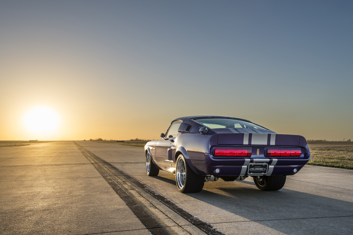 The Oklahoma-based company specializes in re-creating classic pony cars, including its ’67 Mustang platform chosen by the Middle Eastern gentleman who also opted for the full Shelby treatment and a deep purplish blue shade the manufacturer refers to as “burple.”